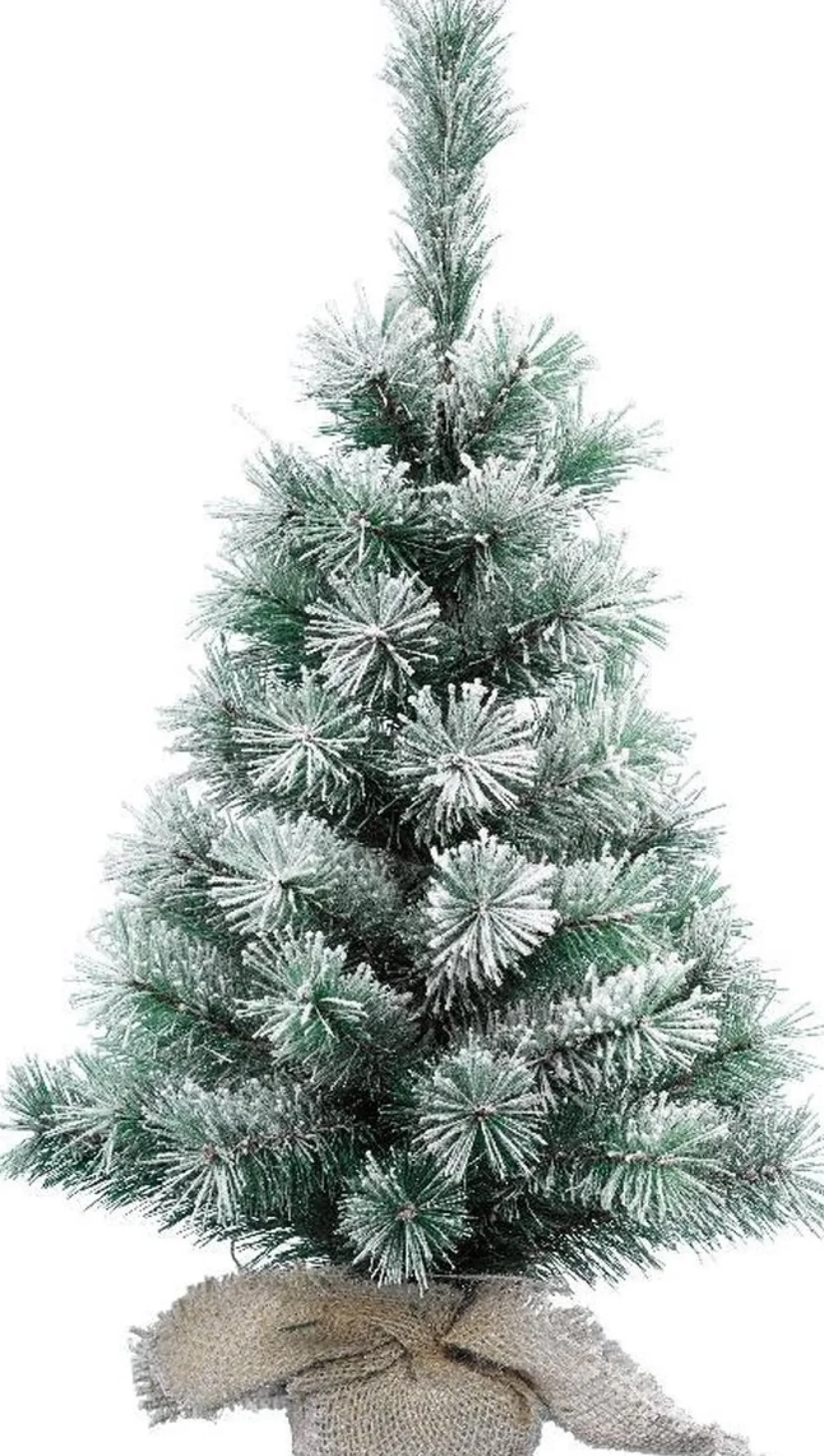 De Besneeuwde Mini Kunstkerstboom Wordt Geleverd In Een Zak Inclusief Voet Met Jute Zak.