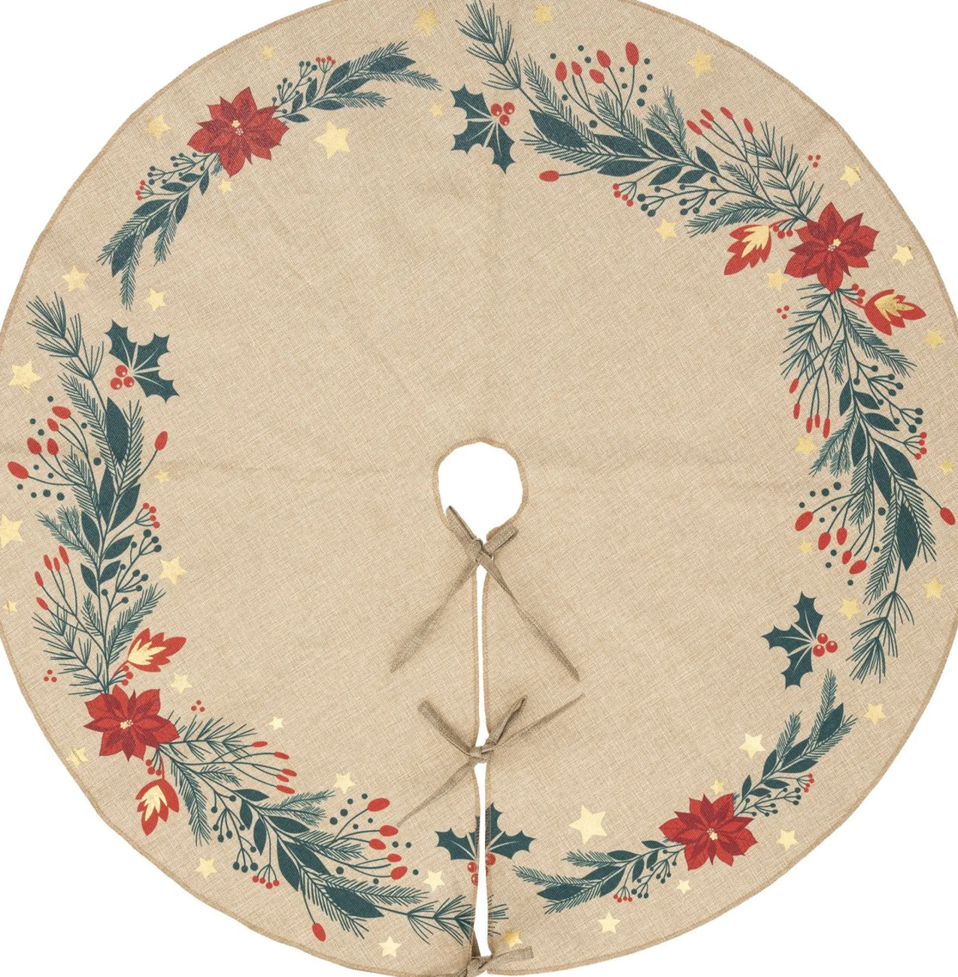 Kerstboomrok/Kerstboom Kleed Beige Met Kerststerren Print. Materiaal: Polyester. De Diameter Van De Hele Rok Is 90 Cm. De Lengte Tot Het Gat Is Ongeveer 40-43 Cm. Een Rok/Kleed Om Aan De Onderkant Van De Kerstboom Te Draperen. Kerstboomkleden En Kerstboomrokken.