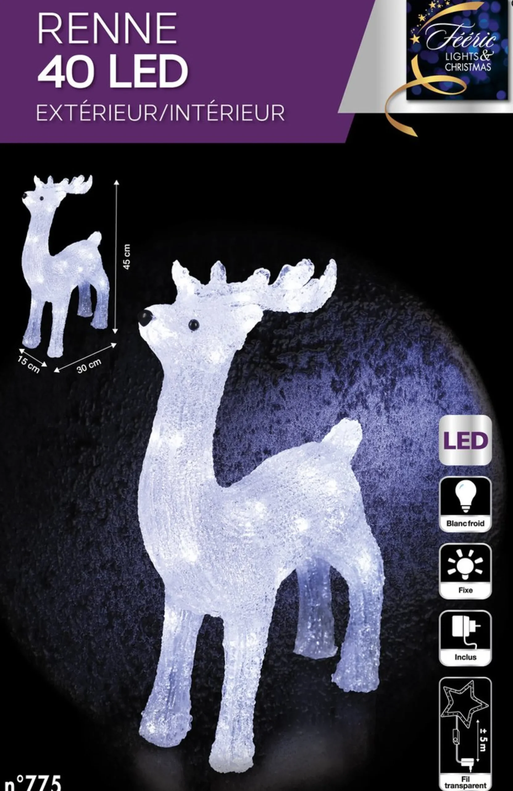 Verlicht Led Figuur Van Een Rendier, Voor Binnen En/Of Buiten. Formaat: 30,5 X 12 X 45,5 Cm. De Verlichte Staande Rendier Heeft 40 Led Lampjes En Geeft Warm Wit Licht. Materiaal: Kunststof. Voeding: Stroom/Lichtnet. Met 500 Cm Transparant Aanloopsnoer. Verlichte Figuren/Dieren Voor Binnen Of Buiten Kerstversiering/Kerstdecoratie.