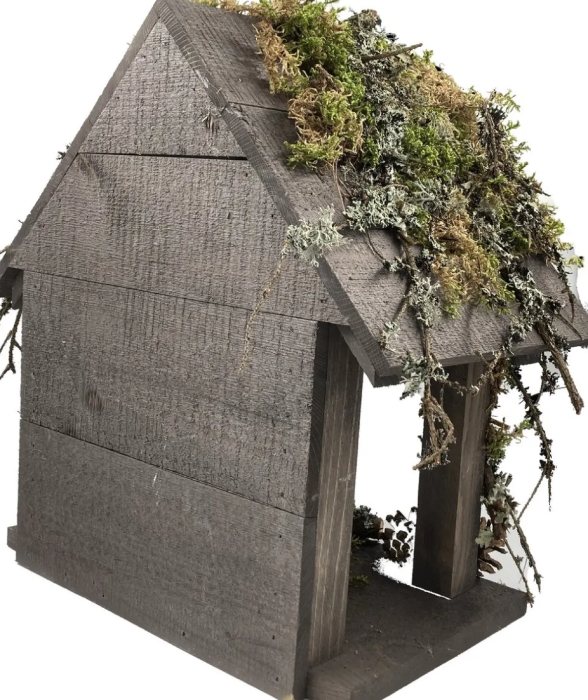 Garden Spirit Kerststal Gemaakt Van Massief Dennenhout. Het Kerststalletje Is Bedekt Met Mossen, Takjes En Dennenappels…