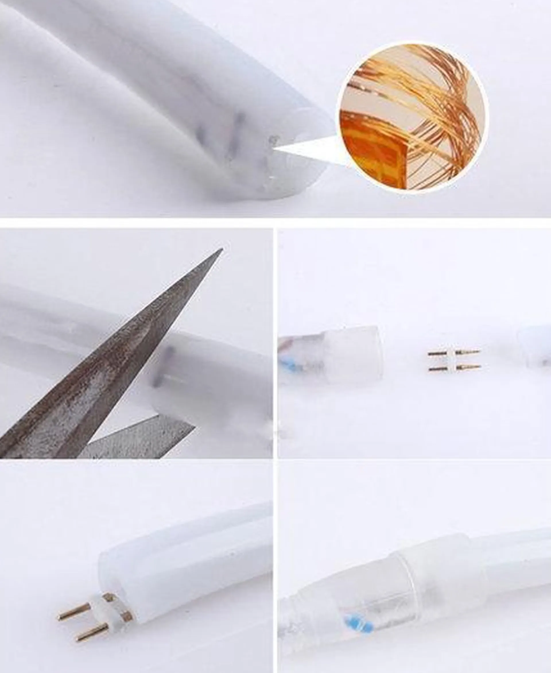 Wat U Hier Ziet Is Niets Minder Dan De Ultieme Led Verlichting Die In Het Zicht Hangt. De Koel Witte 230 Volt Led Neon Flex 360 Graden Heeft High Brightness Epistar Led’s Die Voor Een Koel Wit Licht Zorgen En Is Zowel Binnen Als Buiten Goed Te Gebruiken. De Ip Waarde Van 65 Zorgt Ervoor Dat Hij Compleet Waterdicht Is En Dat Er Ook Geen Stof En Dergelijke Bij In Kan Komen. Hij Is Heel Eenvoudig Te Installeren En U Heeft Er Geen Transformator Voor Nodig. Het Is Gewoon Plug And Play, Aansluiten Op 230 Volt En Branden Maar.