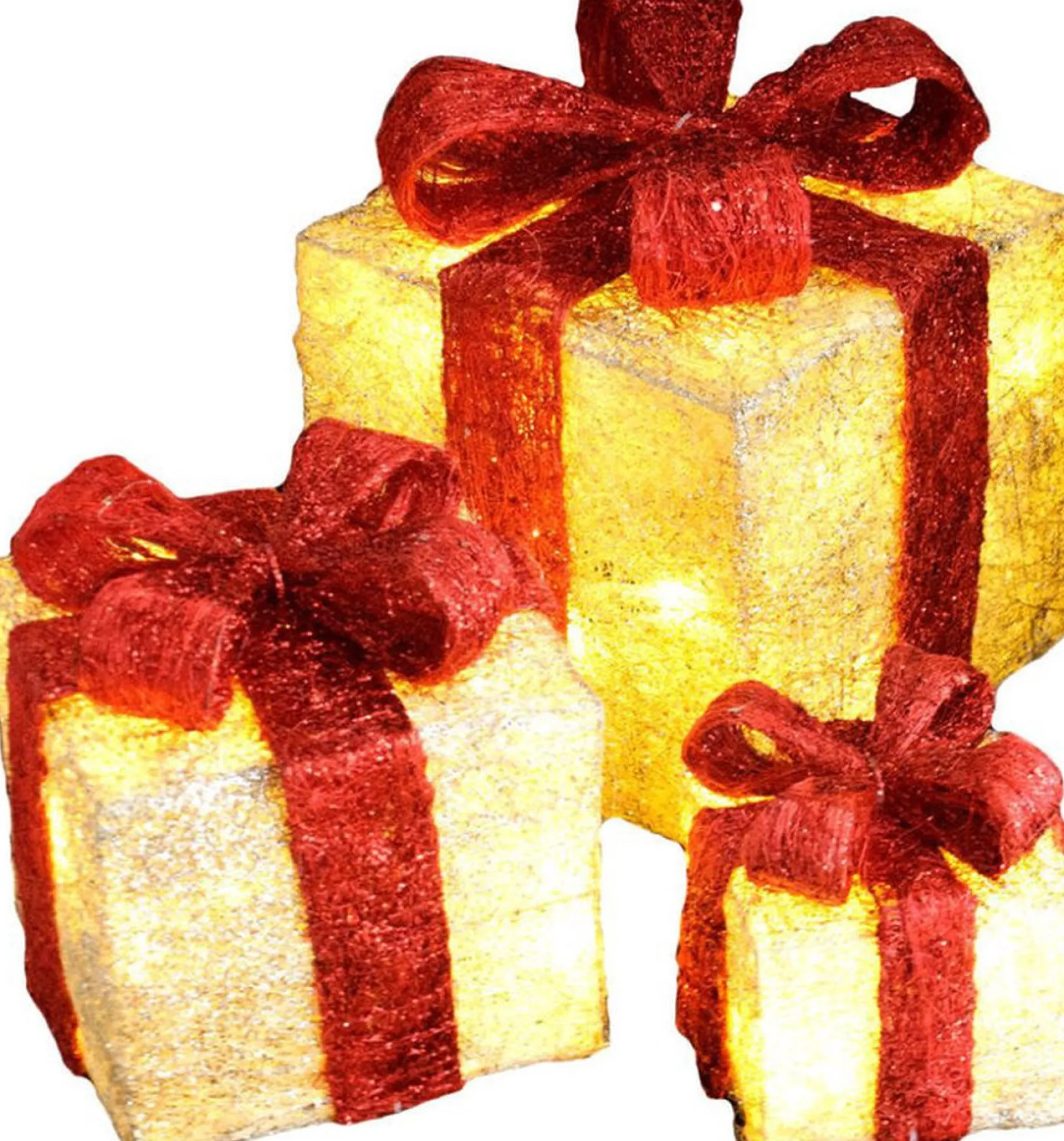 Voeg Wat Glinstering Toe Aan Je Kerstboomversieringen Met Deze Set Van Drie Verlichte Led-Geschenkdozen Van Hi.