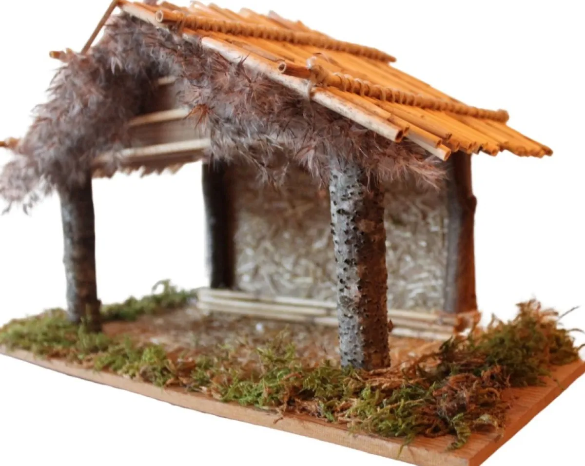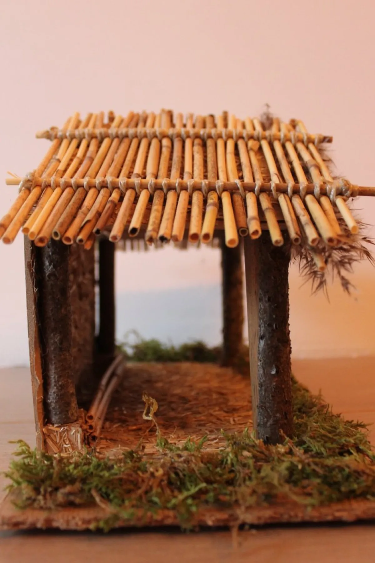 Maak De Kerstsfeer Nog Mooier In Je Huis, Met Deze Schitterende Handgemaakte Kerststal! De Authentieke Kerststal Is Gemaakt Van Echte Natuurlijke Materialen Zoals Stukjes Boomstam En Een Rieten Dak.