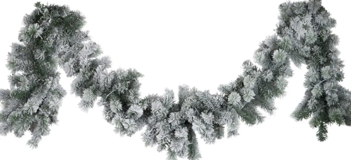 J-Line Kerstkransen> Slinger Ophangend Met 2 Kwastjes Deco Besneeuwd Plastiek Wit
