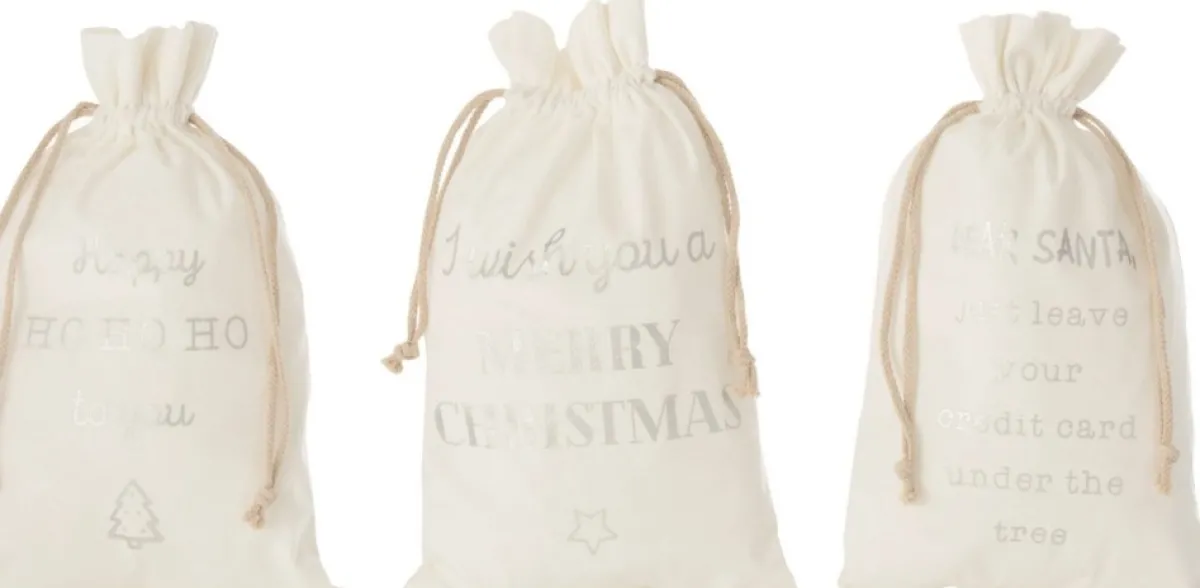 J-Line Kerstsokken> Zak Kerst Engels Velvet Wit Medium Assortiment Van 3