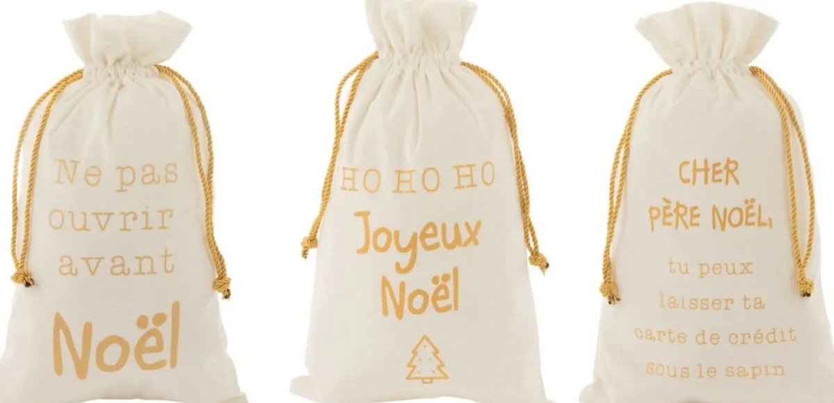 J-Line Kerstsokken> Zak Kerst Frans Velvet /Goud Medium Assortiment Van 3