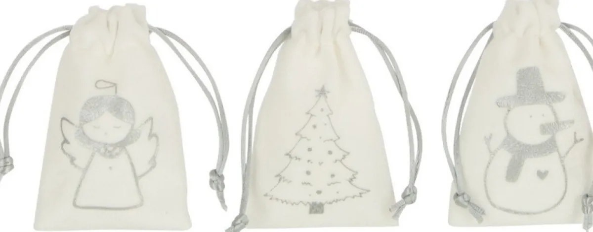 Zak Kerst Mix Velvet Wit/Zilver Extra Small Assortiment Van 3