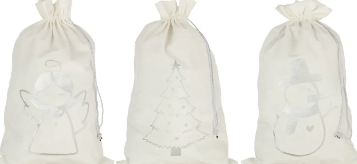 J-Line Kerstsokken> Zak Kerst Mix Velvet Wit/Zilver Large Assortiment Van 3