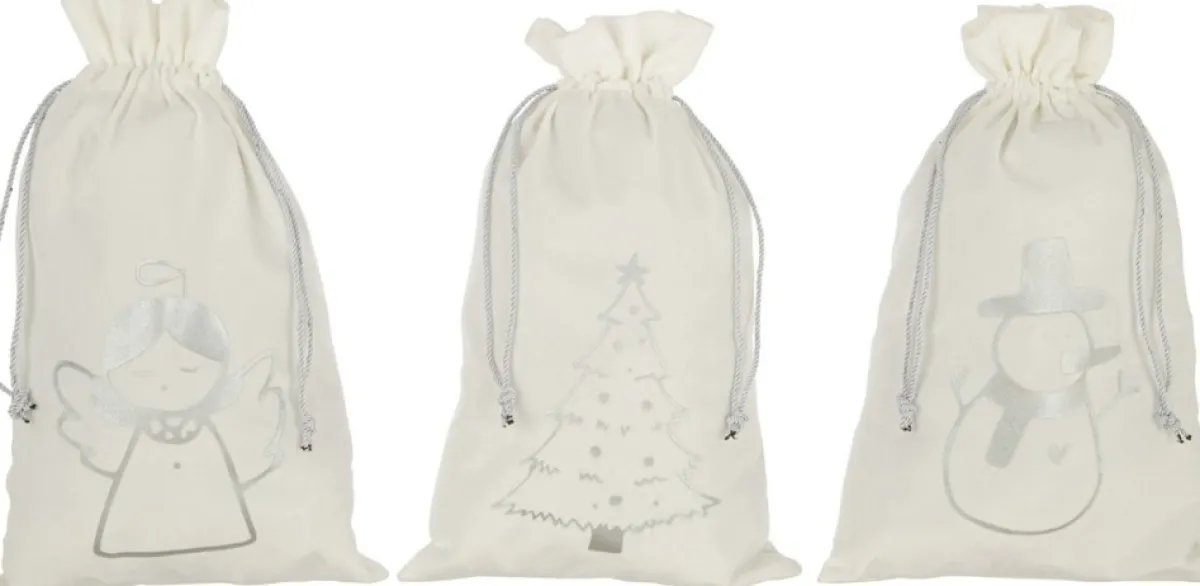 Zak Kerst Mix Velvet Wit/Zilver Medium Assortiment Van 3