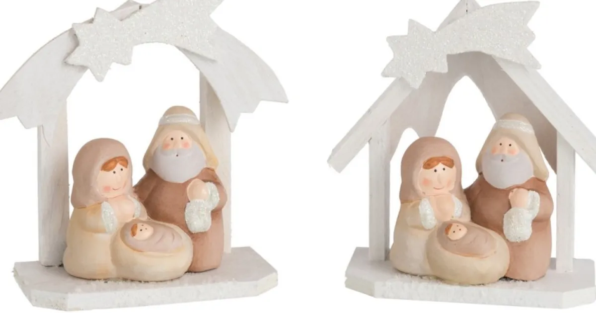 J-Line Kerststallen> Kerststal Hout/Poly Creme Small Ass2 – 2 Stuks
