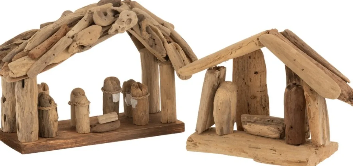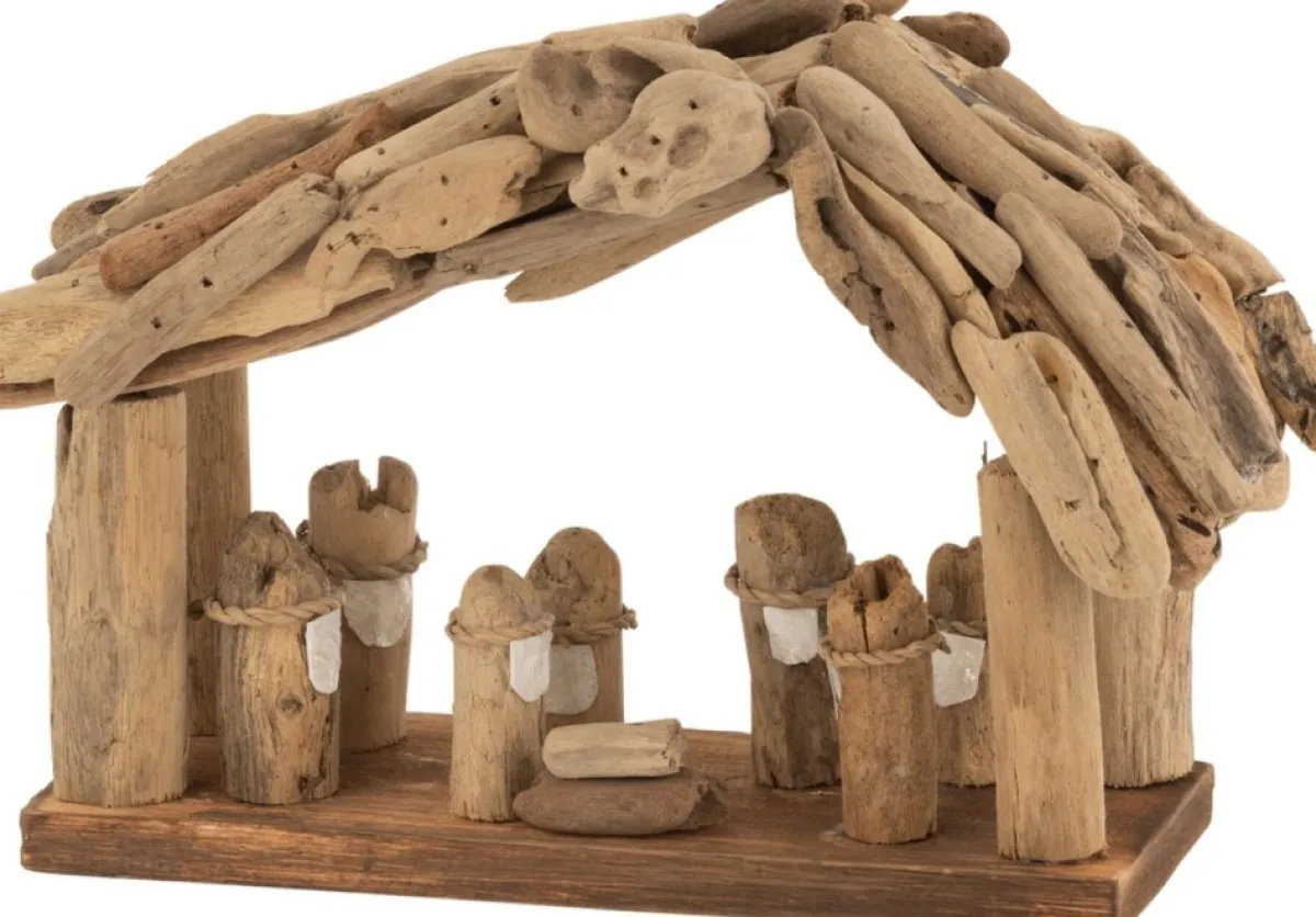 J-Line Kerststallen> Kerststal Simple Drijfhout Naturel Large