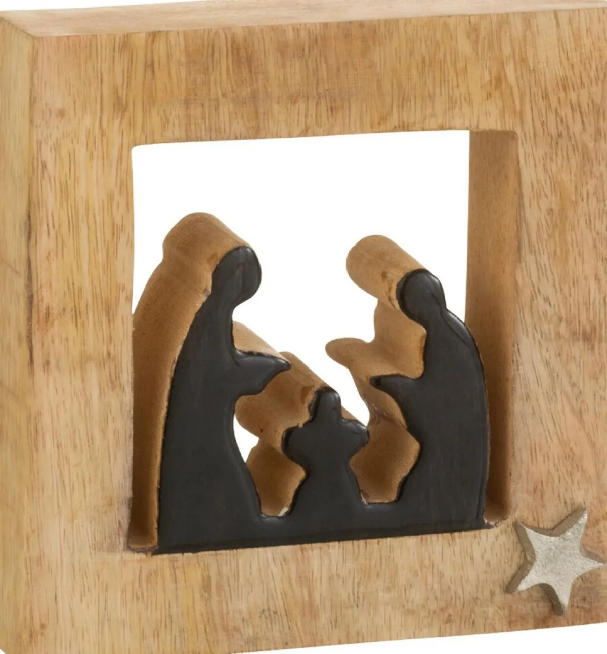 J-Line Kerststallen> Kribbe Vierkant Hout Zwart/Naturel
