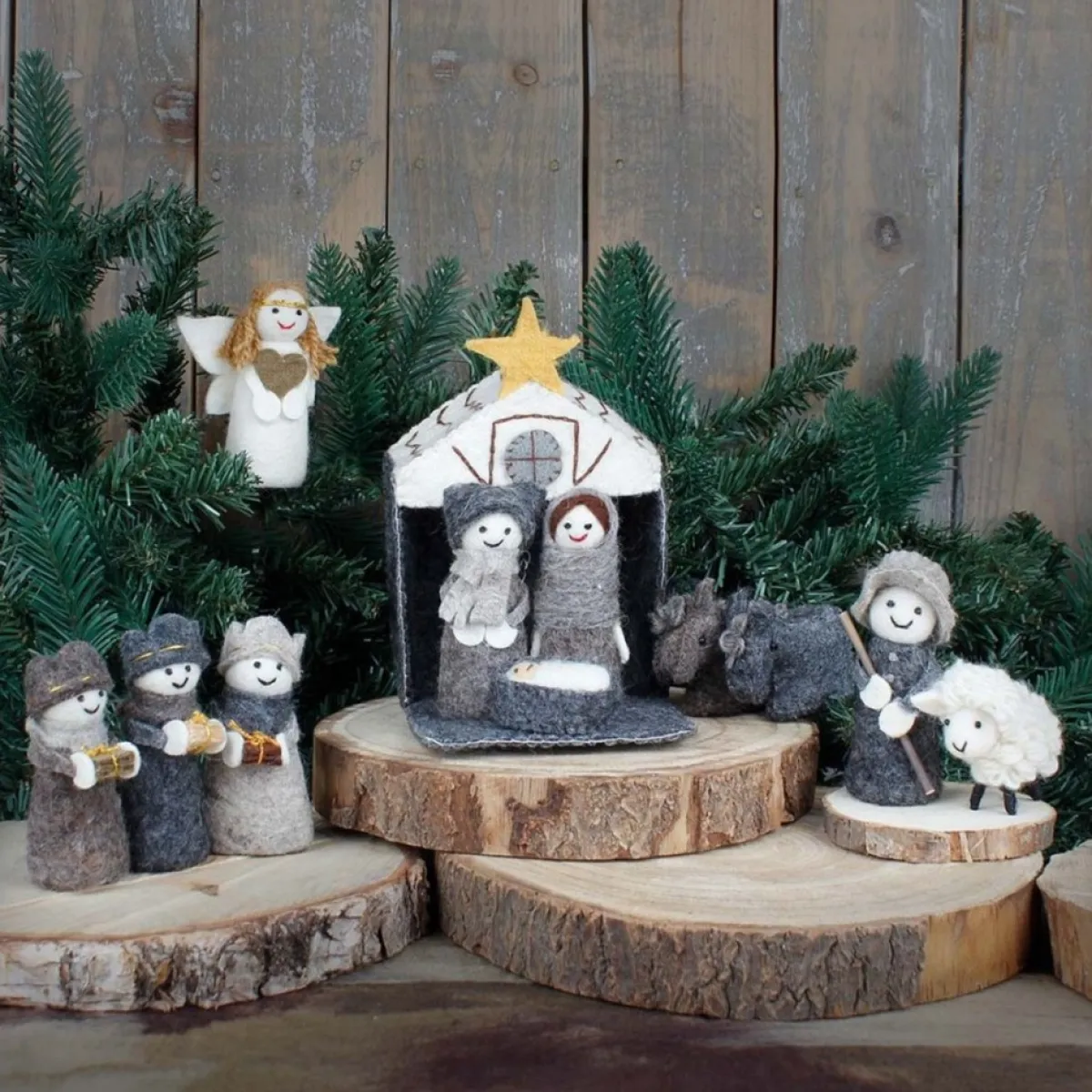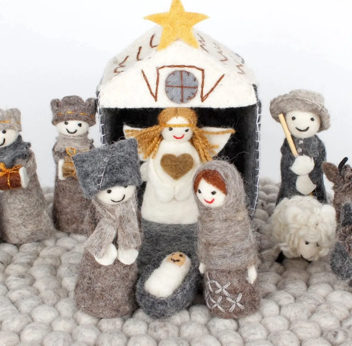 Deze Vilten Kerststallen Worden Met De Hand Gemaakt Door Vrouwen In Nepal.