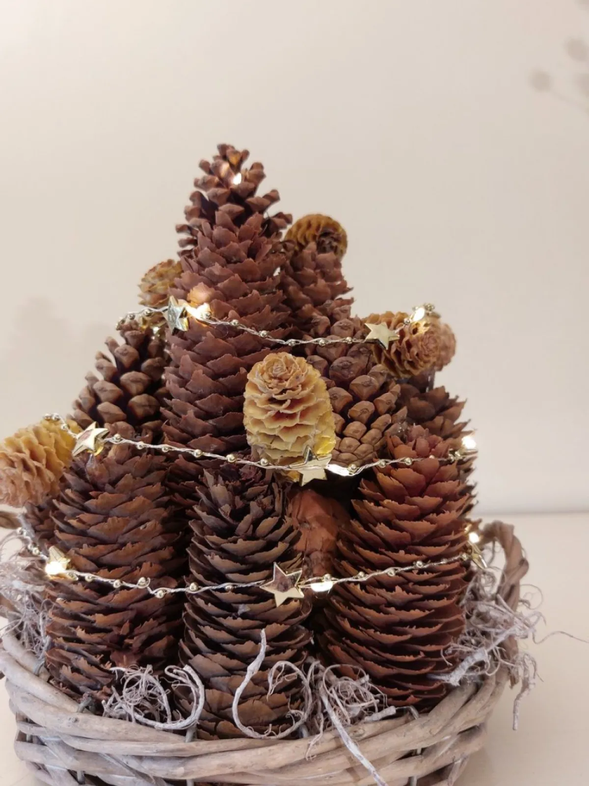 Juuls Gift Shop (merkloos) Kerststukjes>Mandje Met Dennenappel Toren Taart Met Ster Ledverlichting