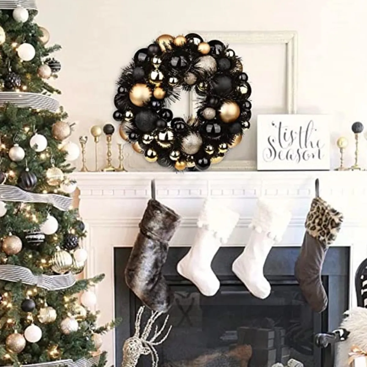 - Quantity & Size Each Christmas Ball Wreath Contains 66 Baubles In 4 Different Sizes. The Diameter Of The Wreath Of Each Ball Is 33 Cm. This Wreath Ball Ornament Is Very Suitable For Dressing The Front Door, Fireplace, Window, Walls, Outdoor Garden.