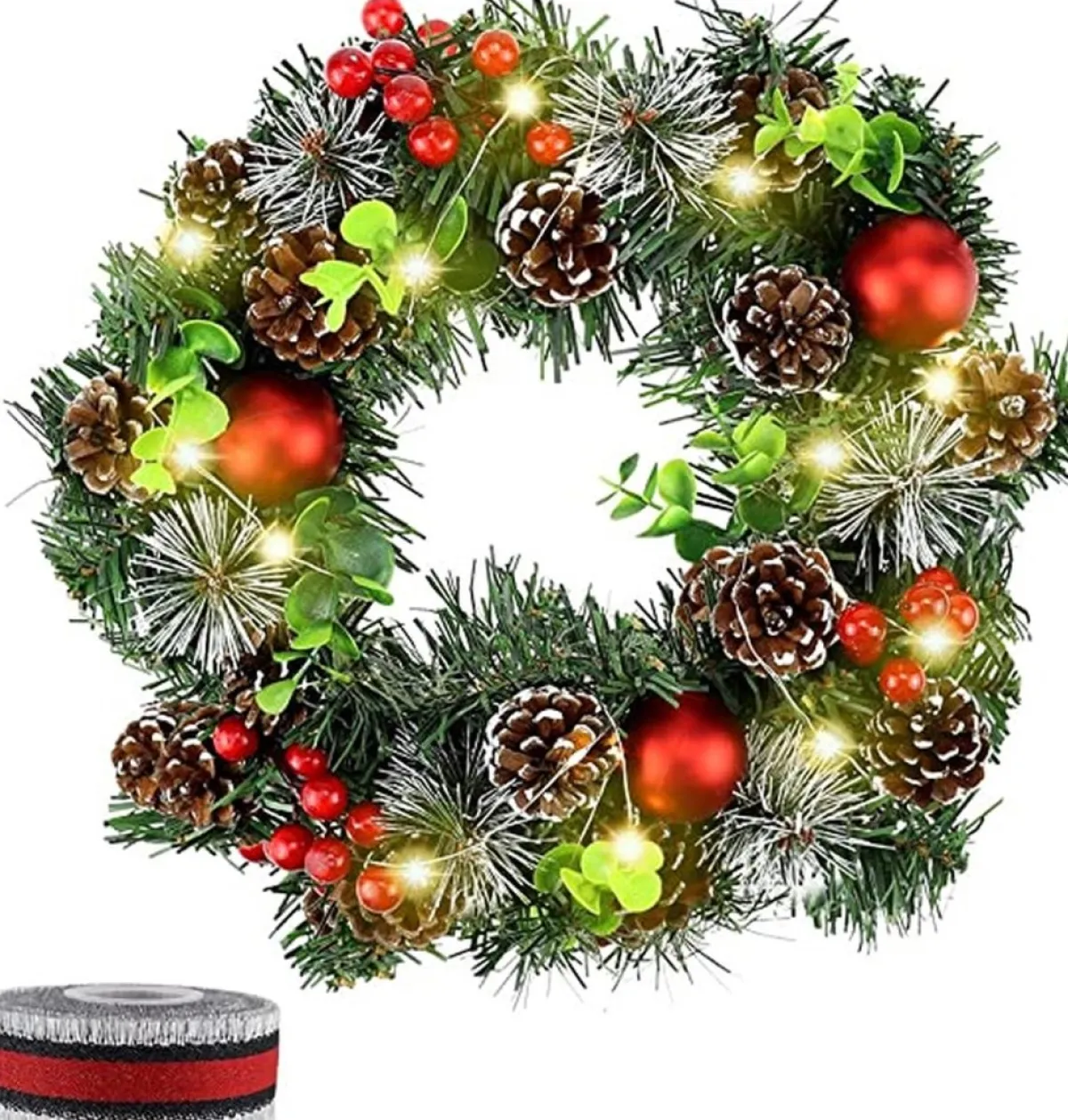 - Packaging: You Will Receive 1 Christmas Wreath With A Diameter Of 30 Cm, With 1 Light Chain And 1 Piece 5 M Long Band. You Can Use Ribbons To Decorate Your Garland Or Gift Box.