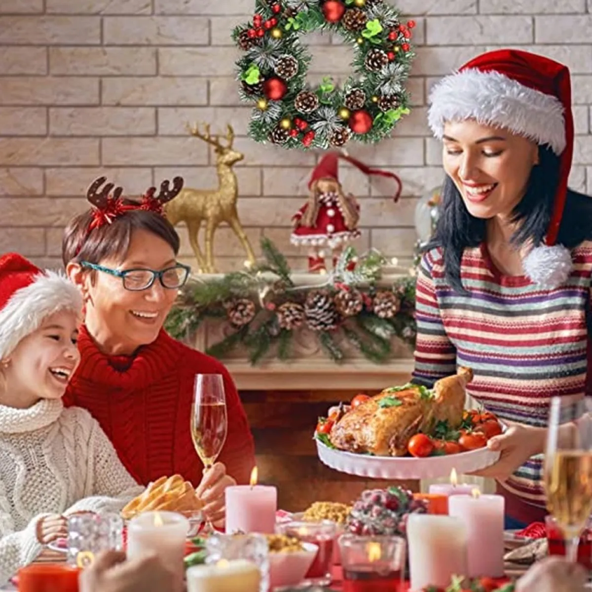 - Applicable Occasion: The Christmas Wreath Is Suitable For Indoor And Outdoor Use. It Can Be Attached To The House Door, In The Living Room, On The Fireplace, On Cabinets, Walls, Windows, Shelves Etc. Be Used Wherever You Want.