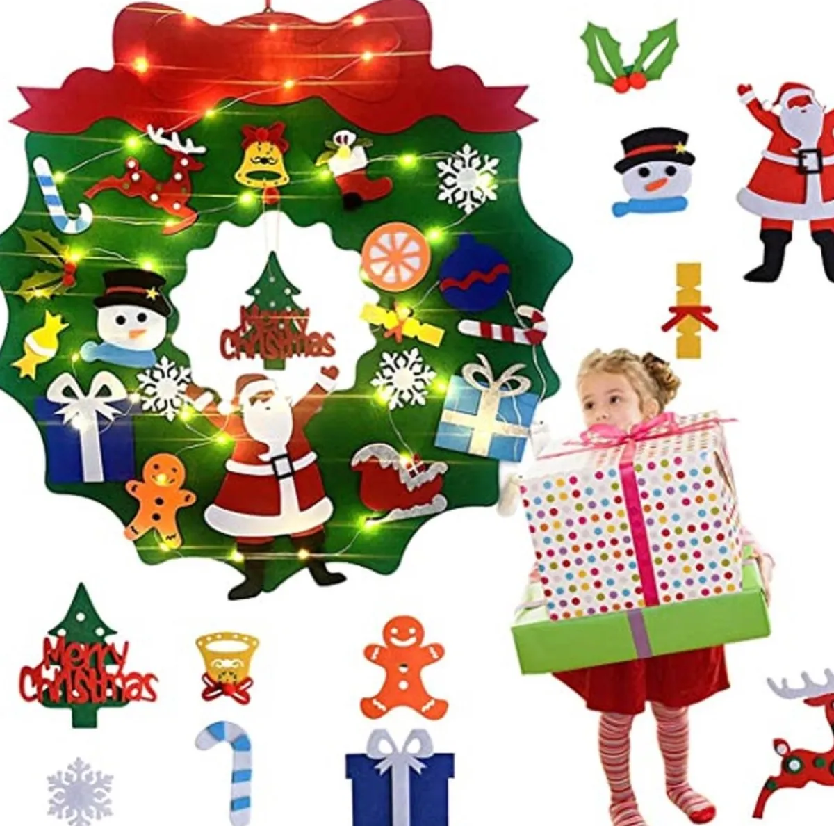 - Box Contents: 22 Pieces Different Diy Felt Ornaments For Christmas Wreath With Led Band, Battery Operated. You Can Decorate The Wreath According To Your Taste. The Battery Is Not Included In The Package.