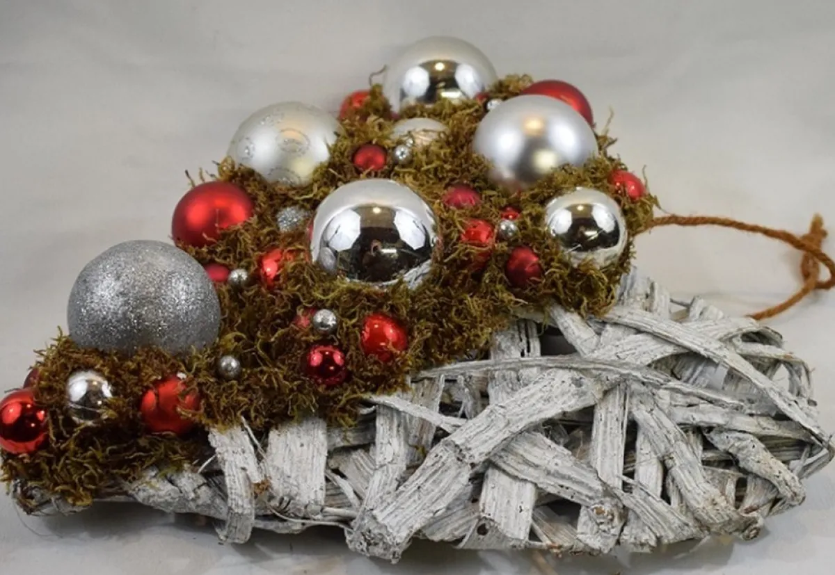 * Kerstkransen>Kerststukje, Kerstkrans, Hart, Rood/Zilver, 31 X