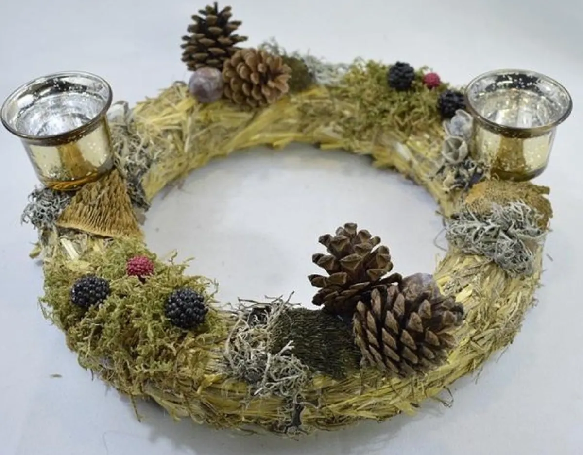 Krans (Kerst) Met 2 Waxinelichtjeshouders – O 30 Cm. 100% Natuurproduct