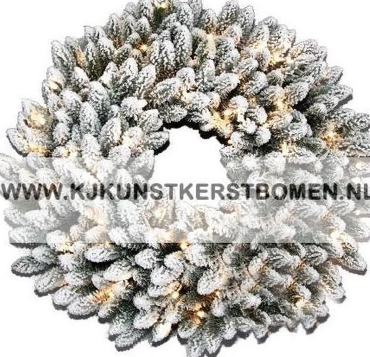 KJ Kunstkerstbomen Kerstkransen>Dakota Flock Kerst Krans Met 100 Geintegreerde Warme Led Lampjes – Kerst Krans Dakota Flock 120 Cm – 380 Takken