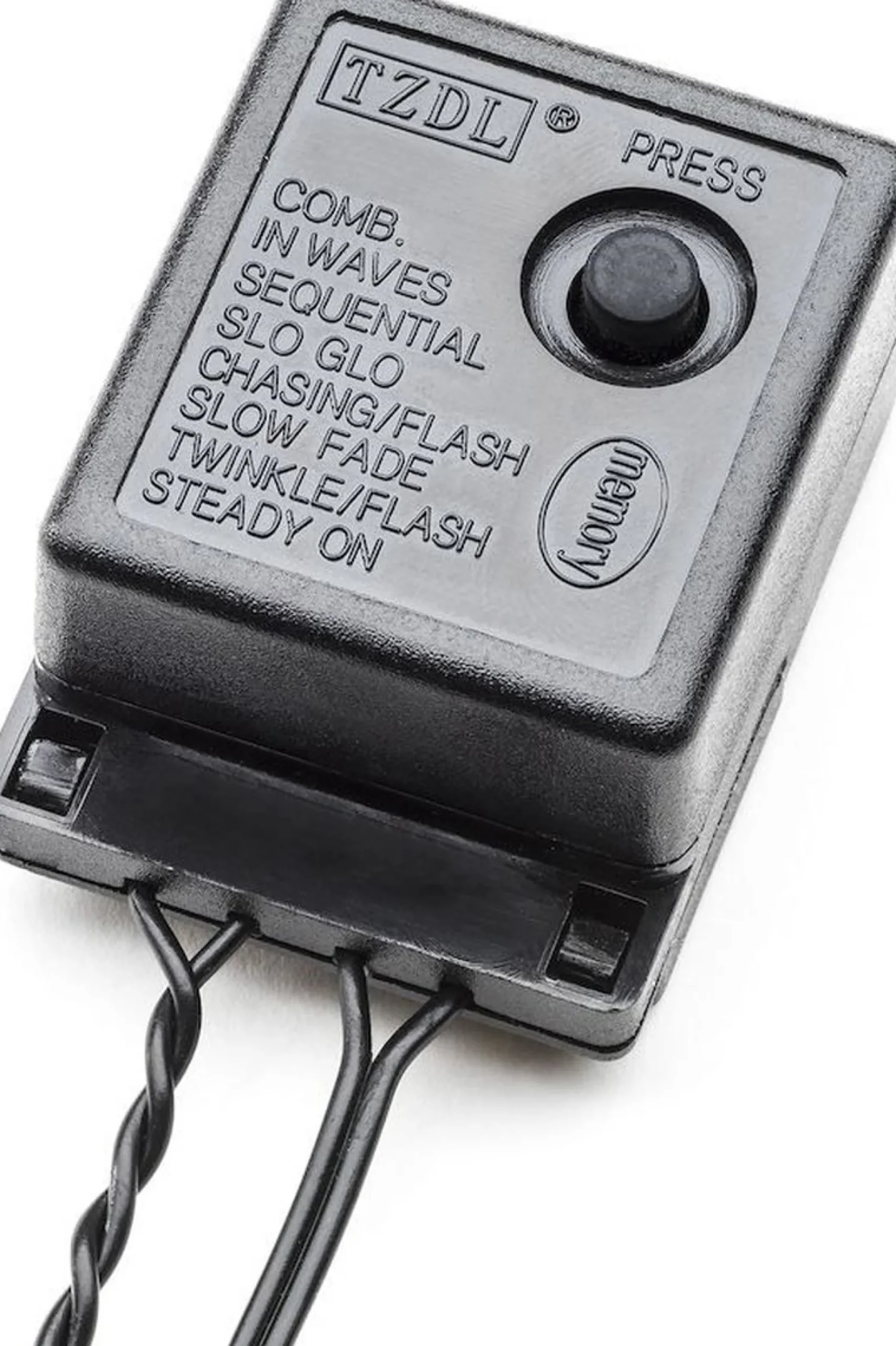 Het Clustersnoer Heeft Een 8 Standen Chaser, Met Naast De Vastlichtende Stand Ook Nog 7 Looplichtstanden In Verschillende Standen. Door Middel Van Een Drukschakelaar Zijn De Volgende Standen Te Selecteren: