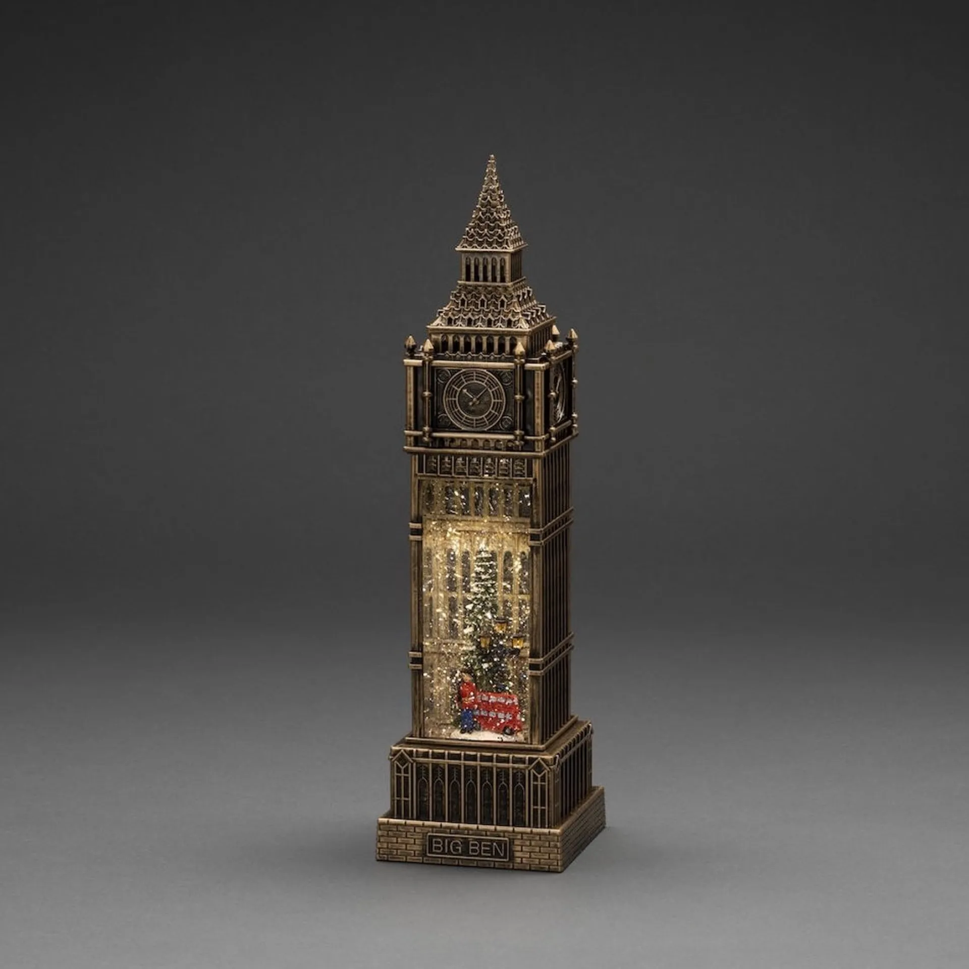Konst Smide Kerstlantaarn Voor Binnen – Big Ben Met Bus En Kerstboom – Warm Wit – 38Cm – Sneeuwlantaarn – Kerstverlichting Op Usb & Batterijen Incl. Timer New