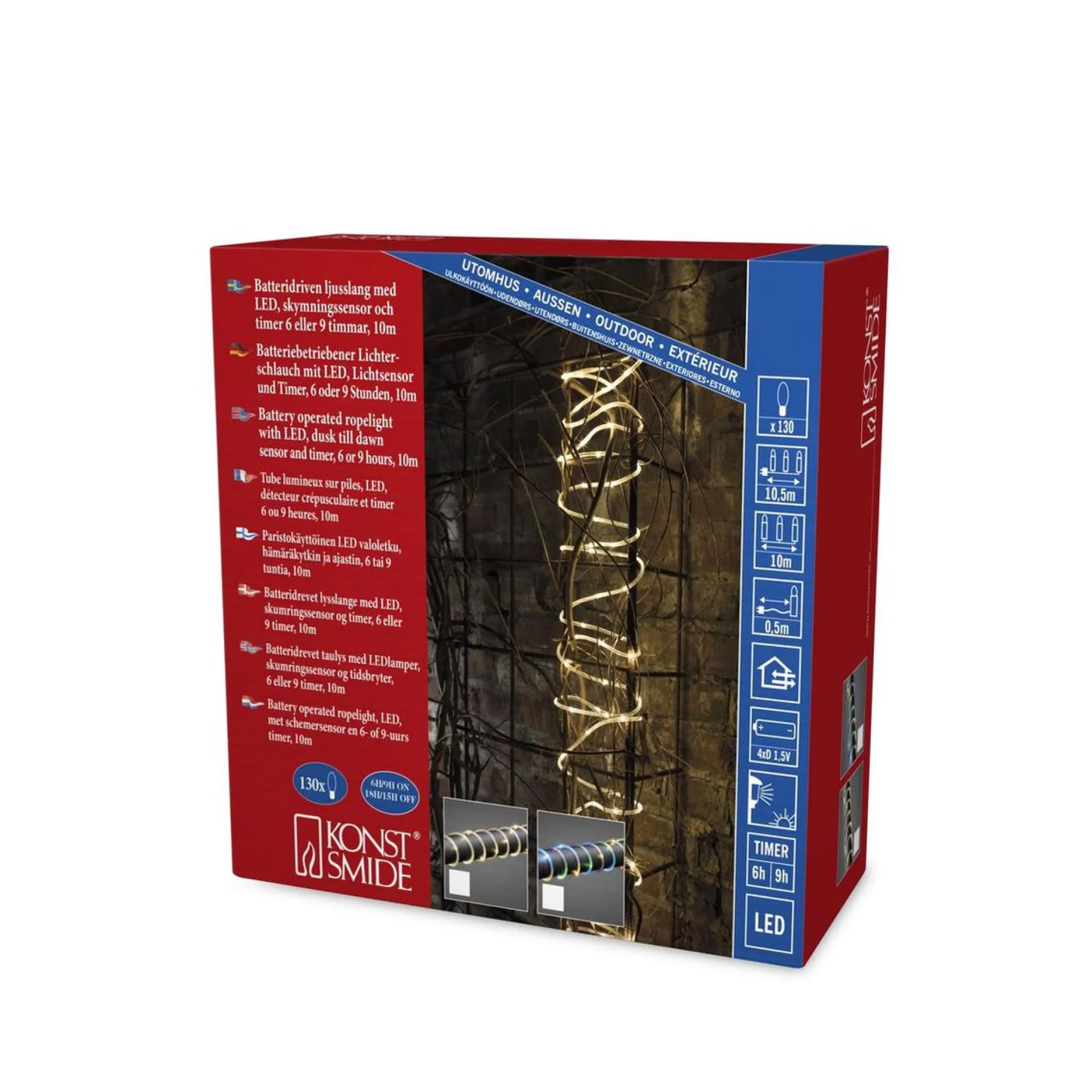 De 65 Lamps Mini Ropelight Is Transparant Van Kleur En Heeft Duurzame En Energiezuinige Multicolor Led Lampjes. De Lichtslang Is Voorzien Van Een Ingebouwde Automatische Lichtsensor In Combinatie Met Een 6- En 9-Uurs Timer. Wordt Het Donker Dan Schakelt De Ropelight Zichzelf In Gedurende Naar Keuze 6 Of 9 Uur. In De 24Uurs Cyclus Schakelt De Lichtslang Vervolgens Automatisch Weer Uit Gedurende 18 Of 15 Uur Uit. Zo Gaat De Ropelight Efficient Om Met Je Batterijcapaciteit.