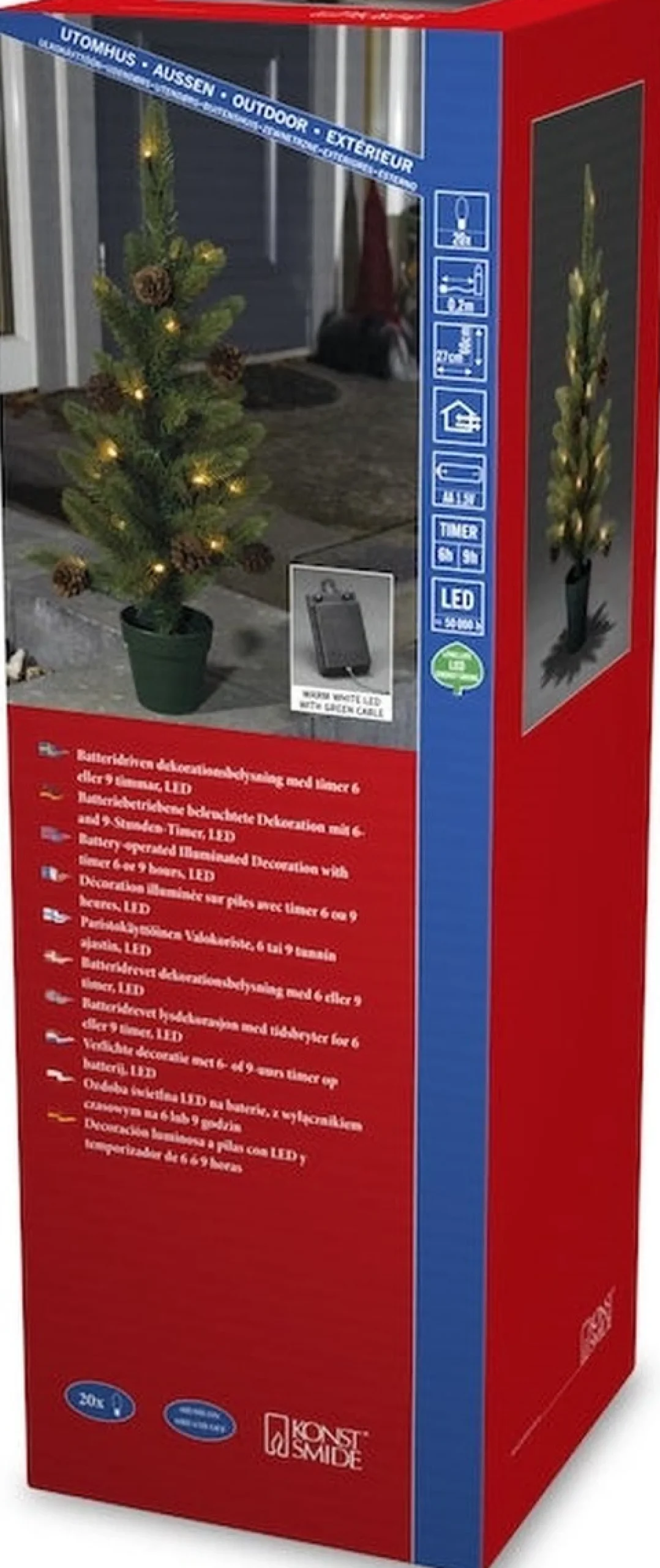 Deze Verlichte Decoratie Kerstboom In Pot Met 20 Warmwitte Led Lampjes Op Batterij Van Konstsmide Brengt Een Gezellige, Feestelijke Sfeer Overal In Je Woonruimte Of Buiten. Het Boompje Met Lichtsnoer Op Batterij Is 60 Centimeter Hoog En Geschikt Voor Binnen- En Buitengebruik. Het Mooi Afgewerkte Boompje Heeft Micro Led Lampjes En Geeft De Perfecte Gezellige, Warmwitte Lichtkleur.