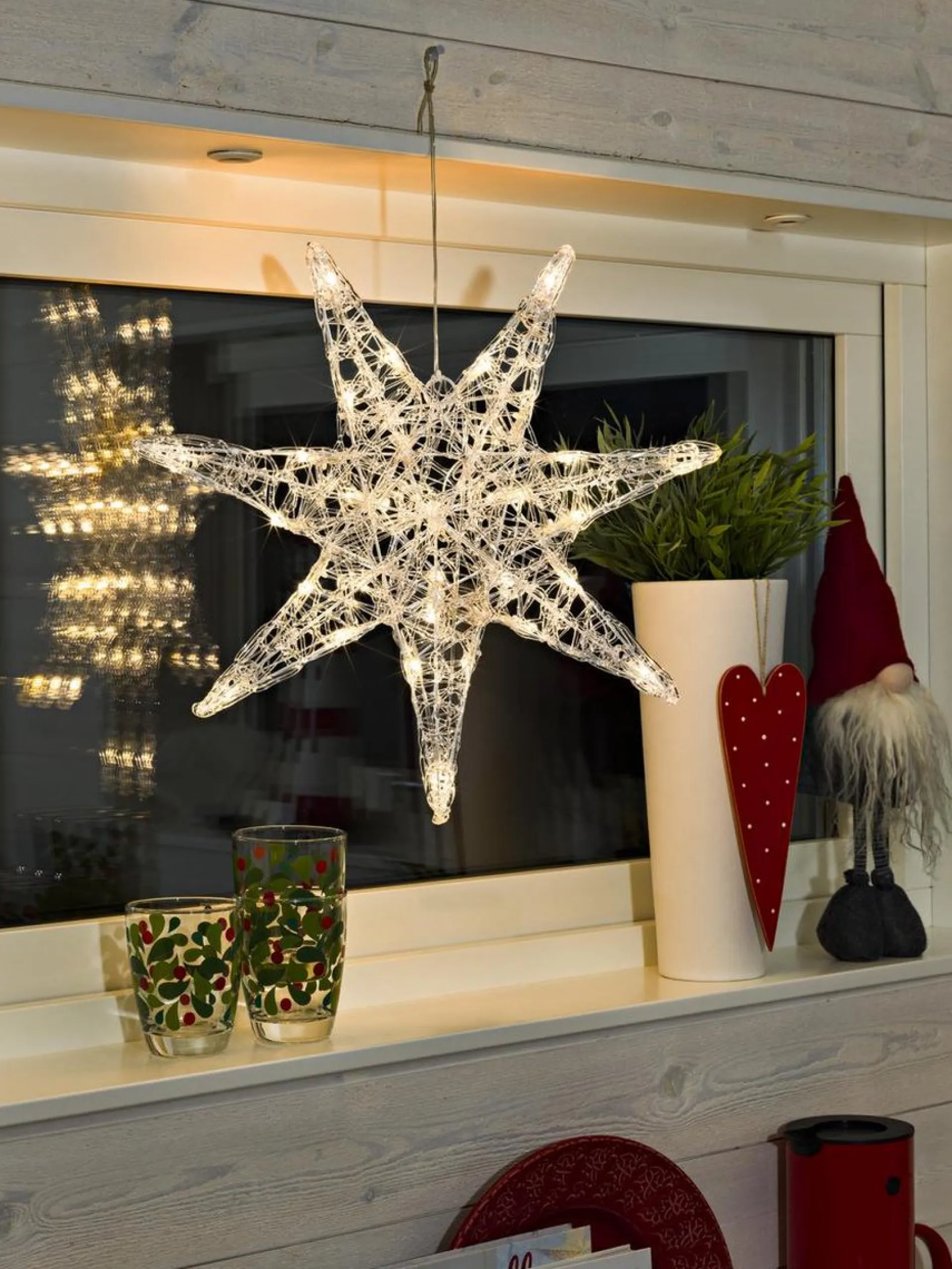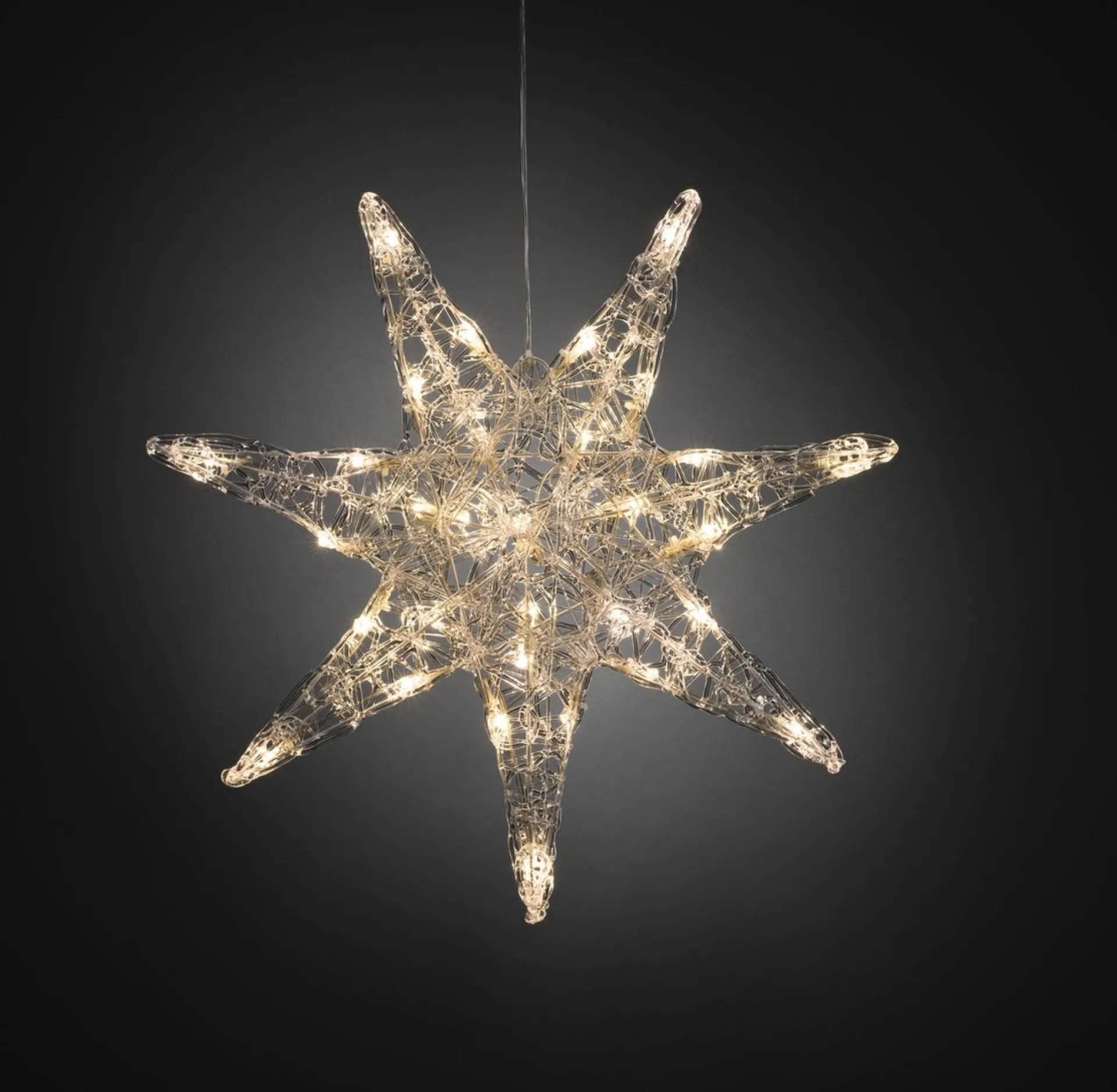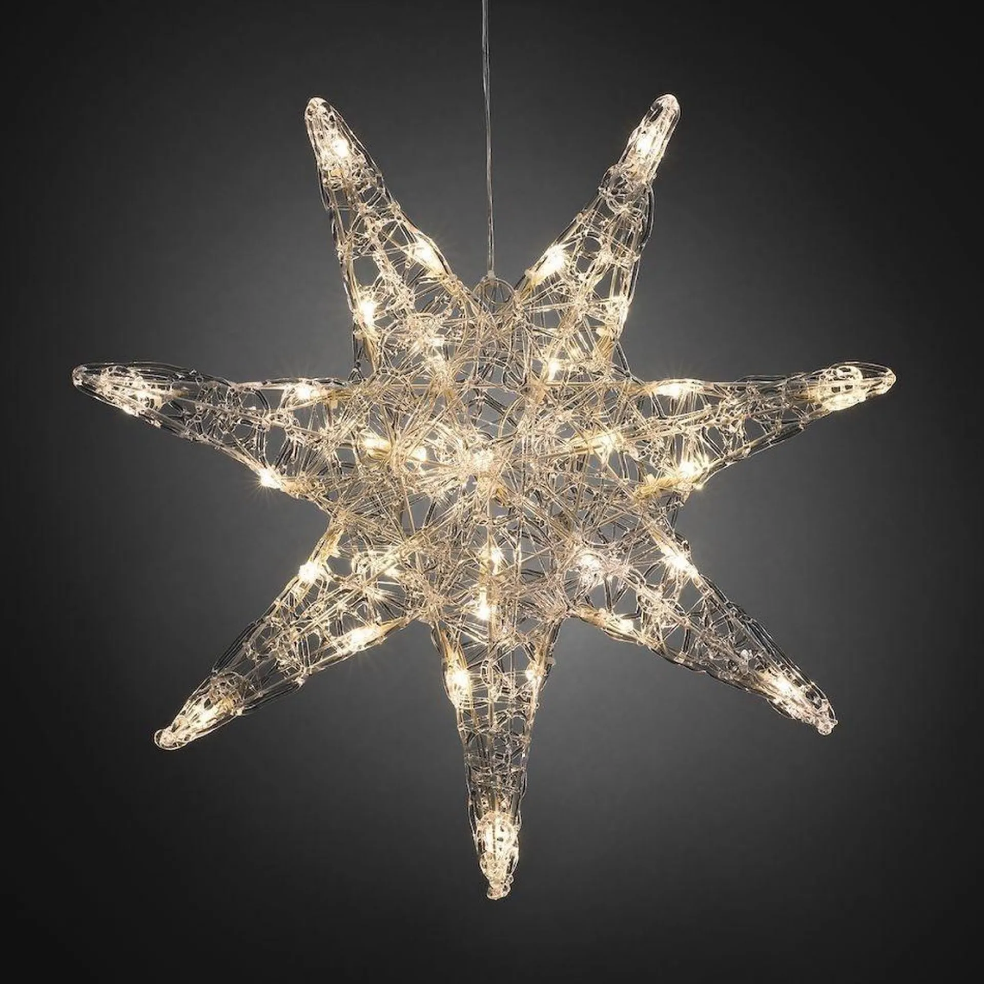 Deze Verlichte Decoratieve Led Acrylster Van Konstsmide Is Geschikt Voor Gebruik Binnenshuis En Brengt De Gezellige Kerstsfeer Bij Je Binnen. Door De 7 Puntige Ster Loopt Een Transparant Snoer Met Warmwitte Led Lampjes Die Een Mooie Warme Sfeer In Huis Verspreidt. Het Acryl Weerkaatst Het Licht En Zorgt Voor Een Optimale Uitstraling. Naast De Mogelijkheid Deze Ster Op Te Hangen Is Hij Ook Geweldig Te Plaatsen Op Een Sidetable Of Kast, Ofwel Voor Een Spiegel. Een Prachtige Blikvanger In Kersttijd.