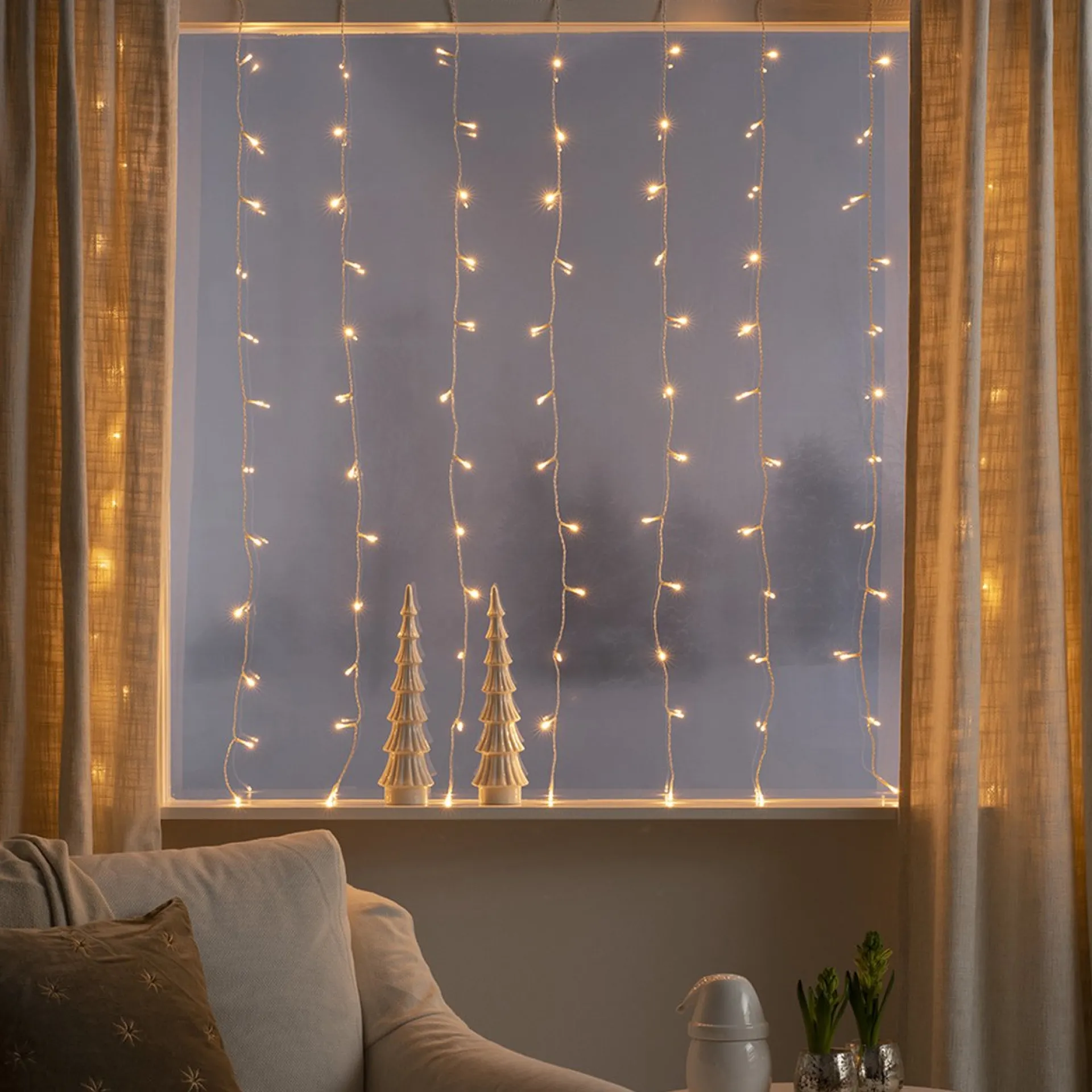 - Het Lichtjesgordijn Heeft 120 Extra Warm-Witte Lampjes