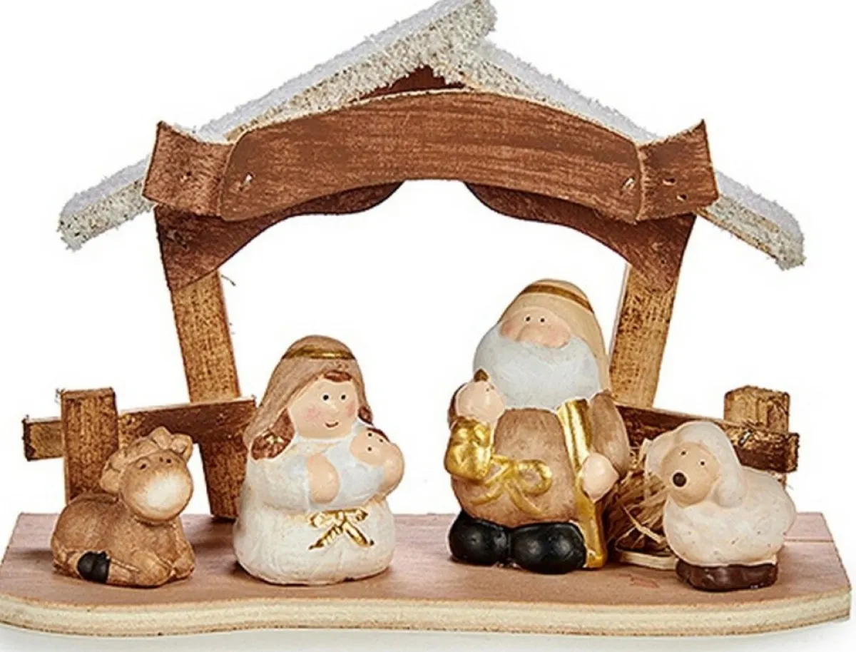 Als Je Een Vleugje Originaliteit Wilt Toevoegen Aan Je Huis, Dan Kan Dat Met Kerststal Set Keramisch Gouden Hout Bruin Wit (8,5 X 15,5 X 21,5 Cm).