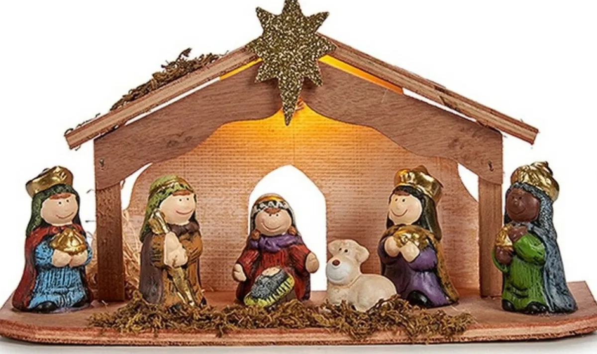 Als Je Een Vleugje Originaliteit Wilt Toevoegen Aan Je Huis, Dan Kan Dat Met Kerststal Set Led Licht Keramisch Hout (30 X 15,5 X 9 Cm).