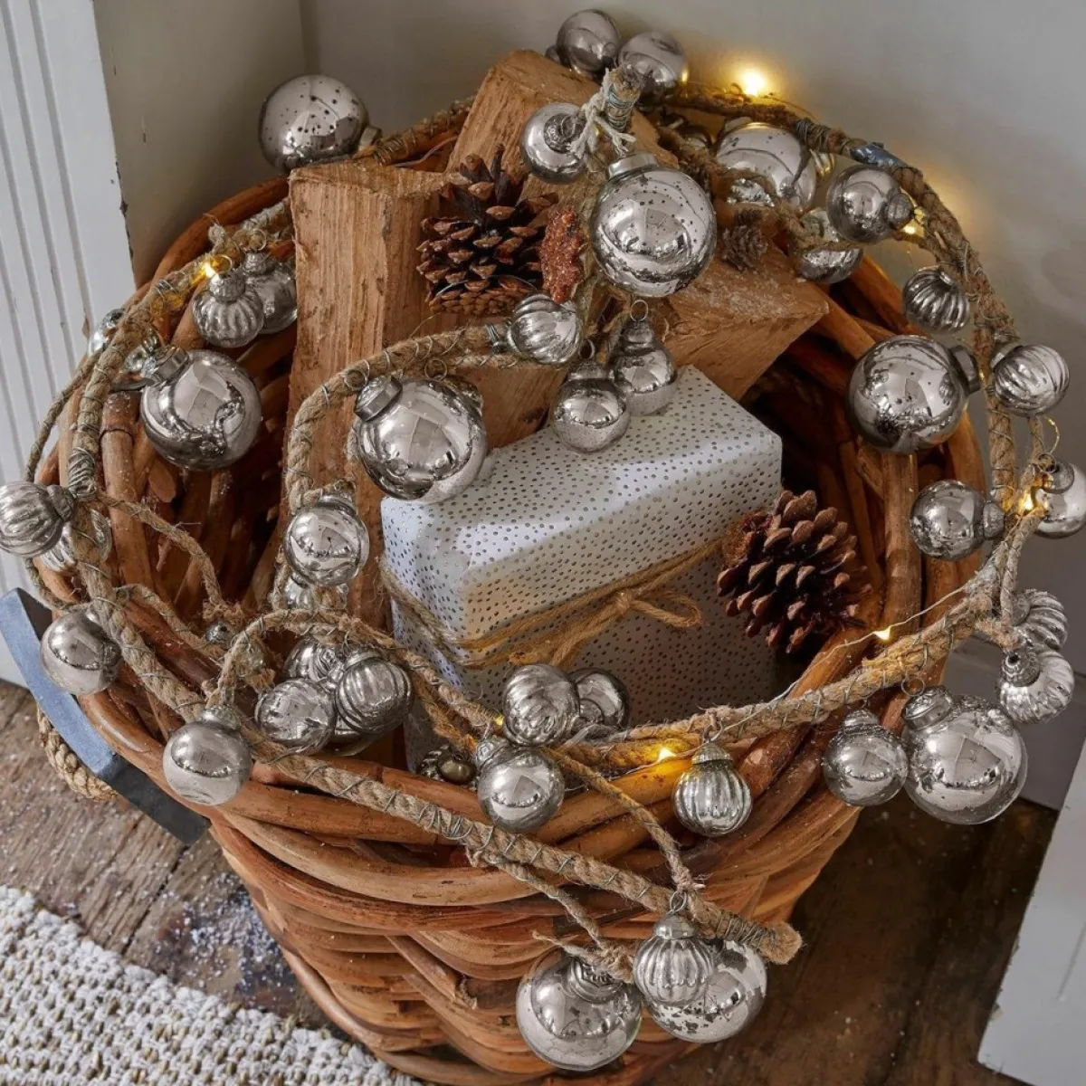 De Kerstballen Van Boerenzilver Zijn Met Draad Aan Het Juten Lint Bevestigd. Mooi Als Kerstboomversiering Of Als Speelse Versiering Bij Het Raam. Zorgt Als Tafeldecoratie Ook Voor Een Feestelijk Accent Op Een Gedekte Tafel. De Combinatie Van Tal Van Boerenzilveren Ballen En Het Natuurlijke Materiaal Jute Vormt Een Erg Mooi Gezicht. Door De Royale Lengte Past Het Fraaie Accessoire Op Vele Plekken. De Guirlande Staat Gewikkeld Om Een Leuning Of Langs Het Raam Net Zo Leuk Als In De Boom Of Aan De Muur.