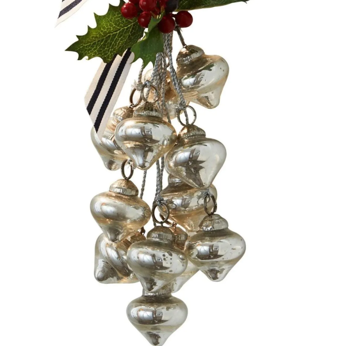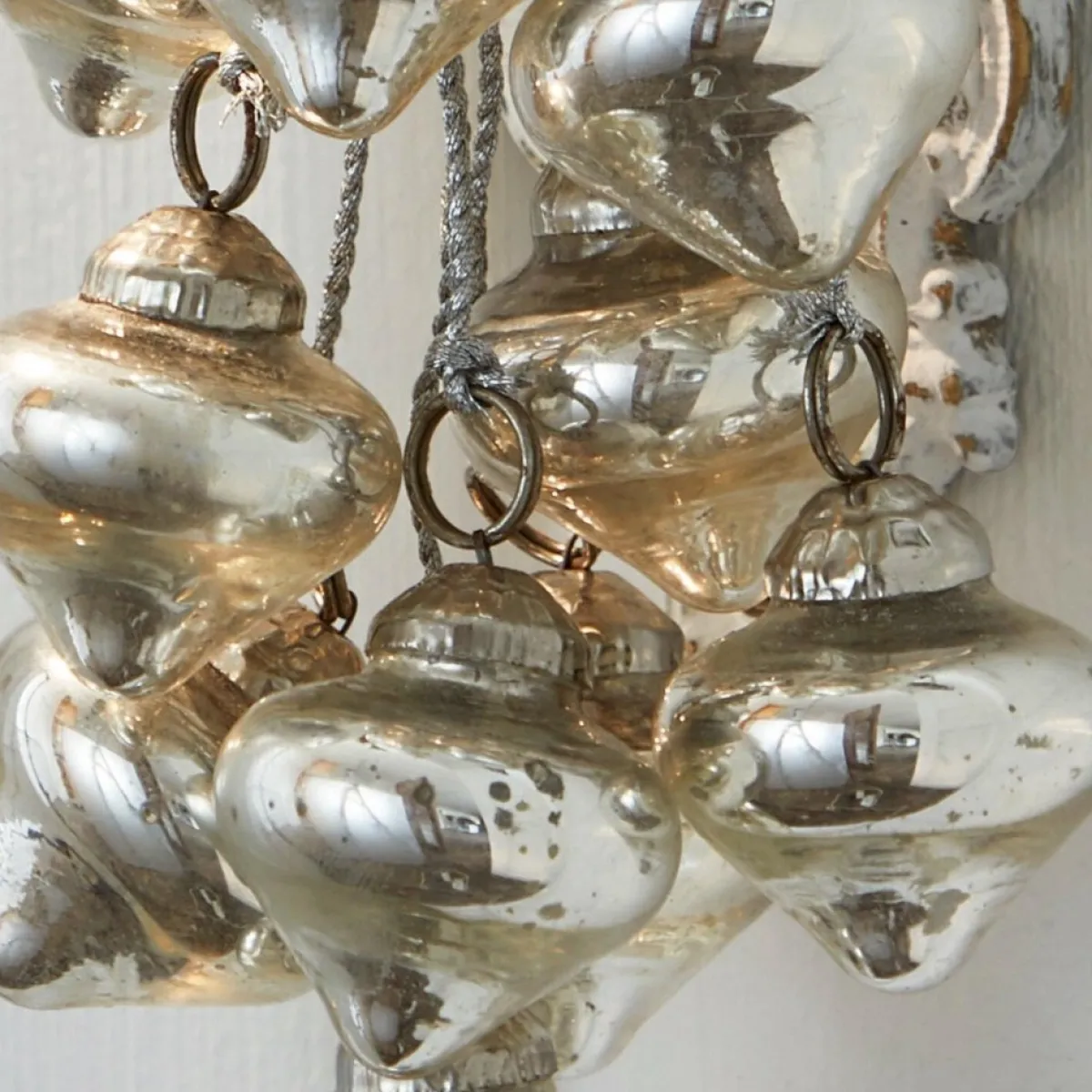 Twaalf Zeer Fijne Kerstballen Van Boerenzilver Zorgen Voor Fonkelende Highlights. Bevestigd Aan Een Zilverkleurige Band. Om Ramen Of Deuren Mee Te Versieren En Kan Ook Aan Een Plafondhaak Worden Gehangen. Deze Glazen Decoratie Geeft Een Bijzondere Glans Aan De Kamer. De Fonkelende Objecten Zien Eruit Als Zachte Klokjes. Niet Alleen Tijdens De Kerstperiode Een Charmante Blikvanger.