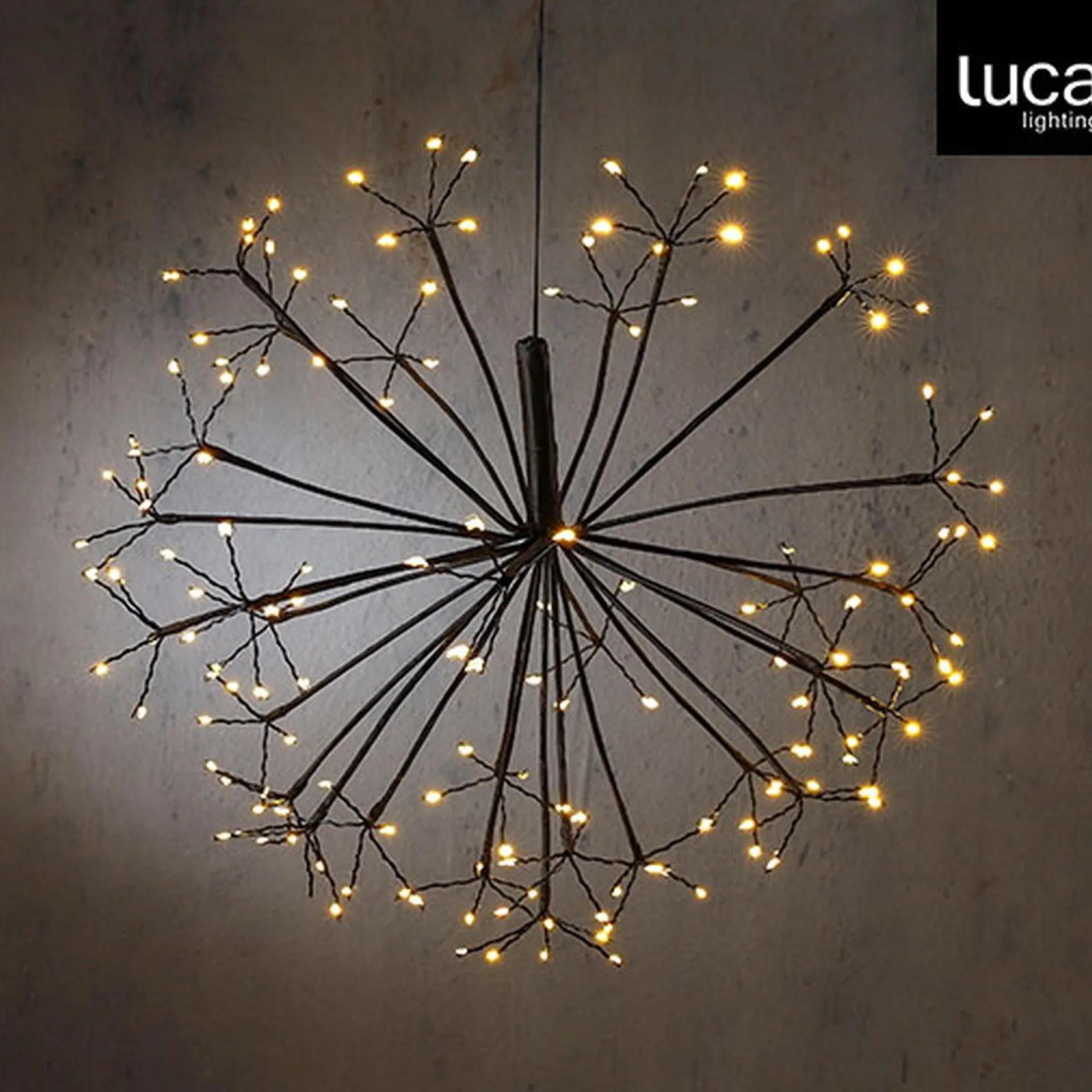Op Zoek Naar Sfeervolle Kerstverlichting? Met Deze Dandelion Led Verlichting Van Luca Lichting Wordt Het Gelijk Gezellig! De Zwarte Hanger Bestaat Uit 150 Led Lampjes Die Een Sfeervol, Warm Wit Licht Uitstralen. Het Design Is Geinspireerd Op Een Dandelion, Oftewel Een Paardenbloem, En Diens Luchtige Pluizenbol. Lekker Speels! Daarnaast Hebben Een Paar Van De Lampjes Een Knipperfunctie, Wat Zorgt Voor Een Leuk Effect. De Verlichting Is Voorzien Van Een Adapter Met Een Aansluitsnoer Van Maar Liefst 5 Meter. Waar Ga Jij Het Gezellig Maken? De Kersthanger Heeft Een Diameter Van 58 Cm En Is 40 Cm Hoog.