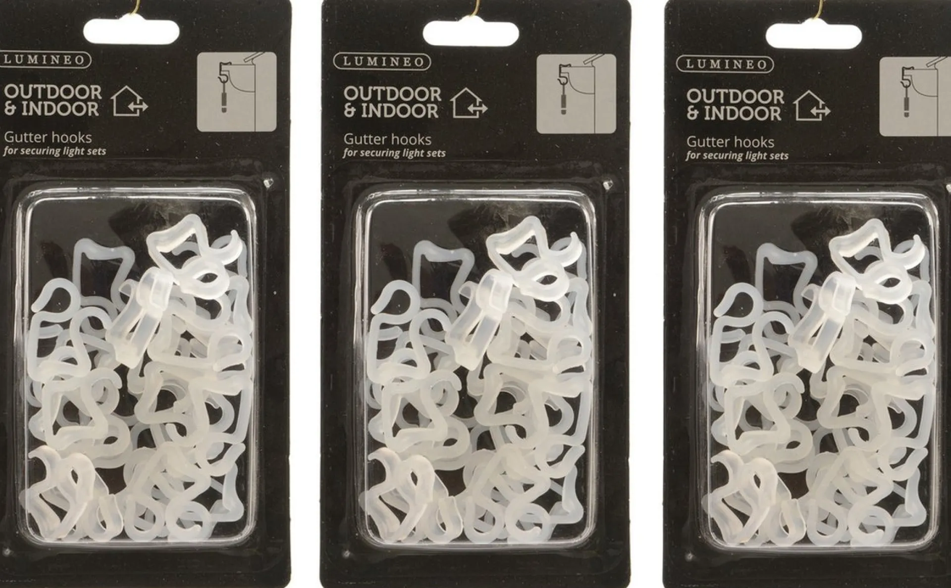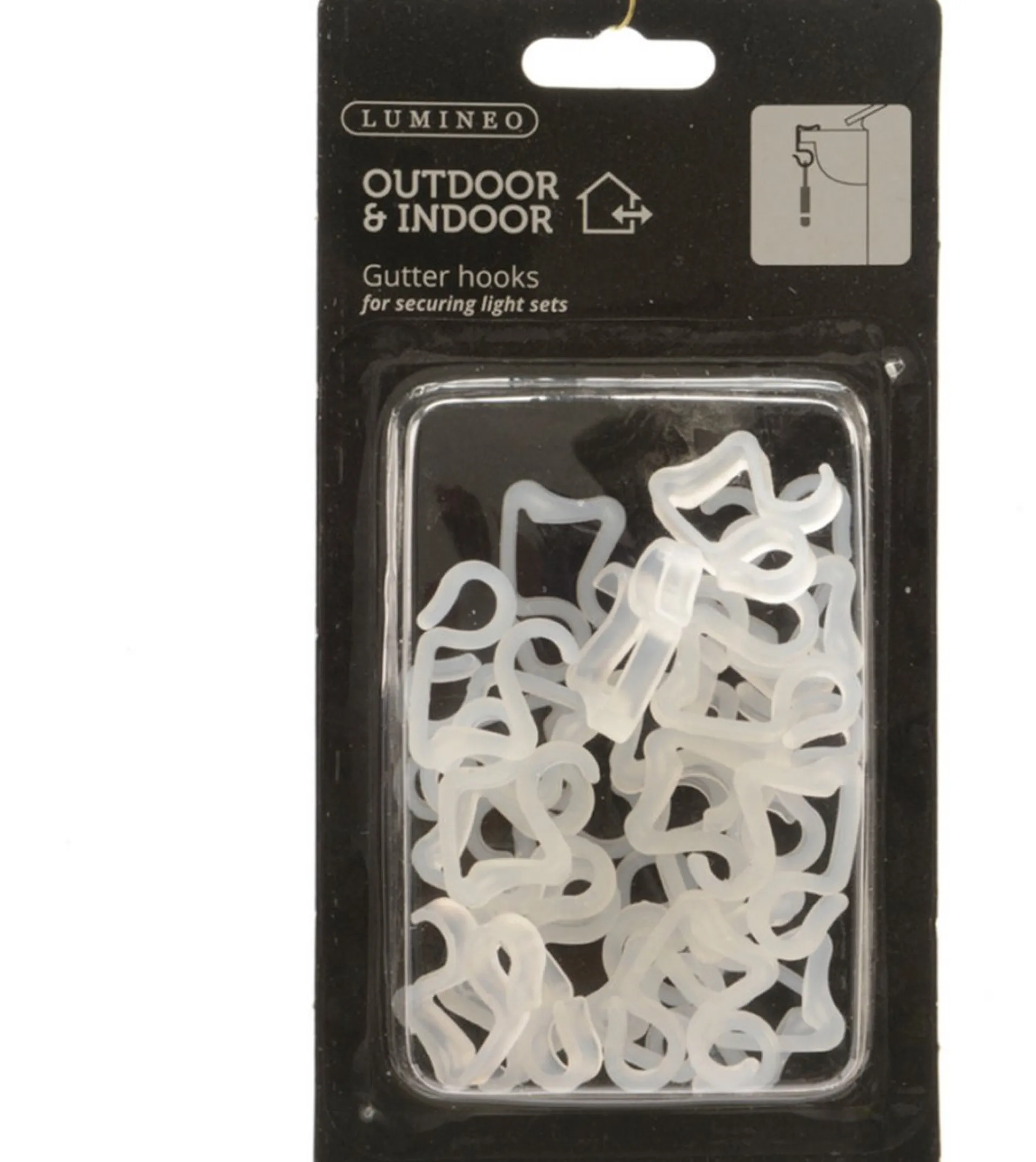 120X Kerstverlichting/Feestverlichting Bevestiging Dakgoot Ophang Haakjes. Formaat: Ca. 0,5 X 3,5 X 2,5 Cm. Materiaal: Kunststof/Plastic. Deze Goothaakjes Zijn Zeer Geschikt Om Kerstverlichting Aan Uw Dakgoot Op Te Hangen. Kerstverlichting/Feestverlichting Lichtsnoeren Ophangen Haakjes.