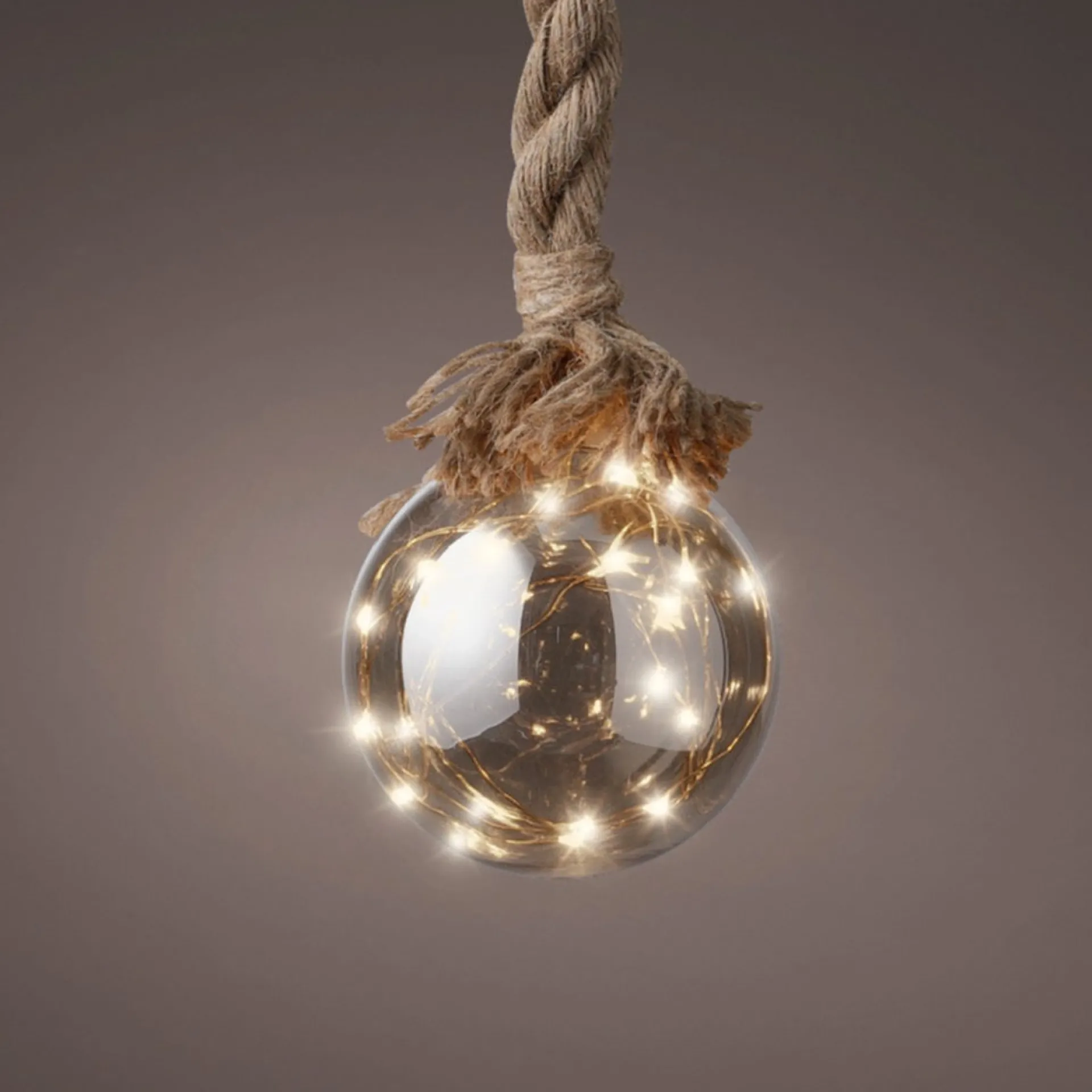 1X Stuks Verlichte Glazen Kerstballen Met 30 Lampjes Zilver/Warm Wit 15 Cm Diameter. Decoratie Kerstbal Aan Een Snoertouw Van 100 Cm.
