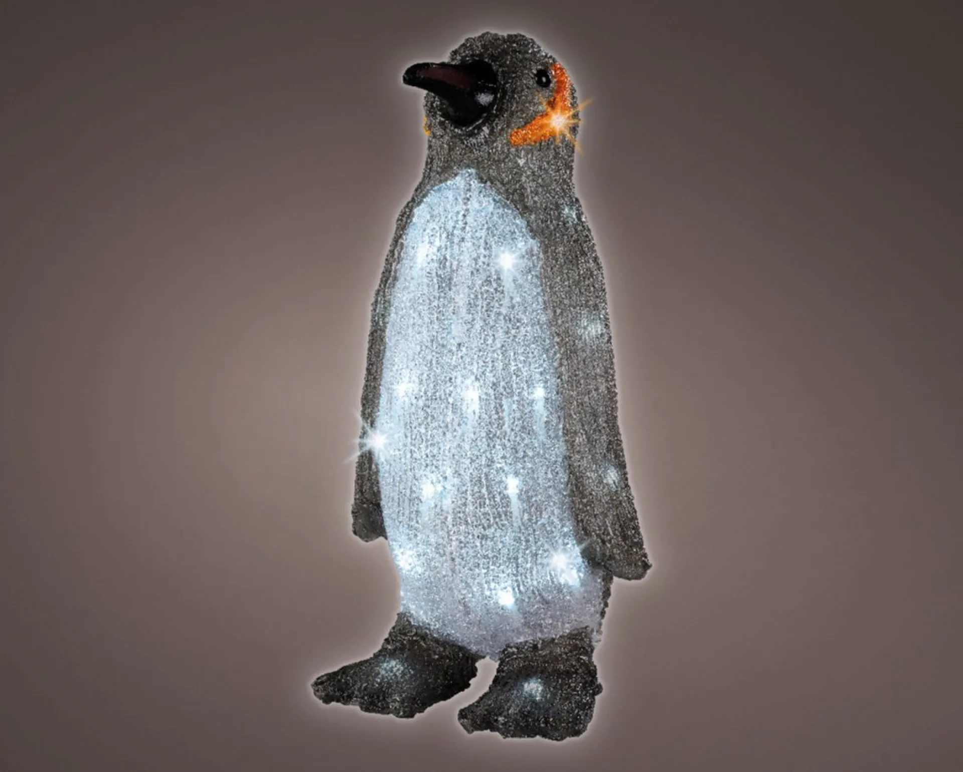 Kerstverlichting Penguin Met Led Licht 33 Cm. Lichtgevende Pinguin In Een Staande Houding. De Pinguin Is Gemaakt Van Grijs Met Wit Acryl Waar 24 Led Lichtjes In Zijn Verwerkt. De Lampjes Geven Koel Wit Licht En Zijn Niet Vervangbaar. Het Transparante Aanloopsnoer Is 5 Meter Lang. Geschikt Voor Binnen En Buiten Gebruik. Afmeting: Ongeveer 17 X 17 X 33 Cm. Ce-Kema Keur.