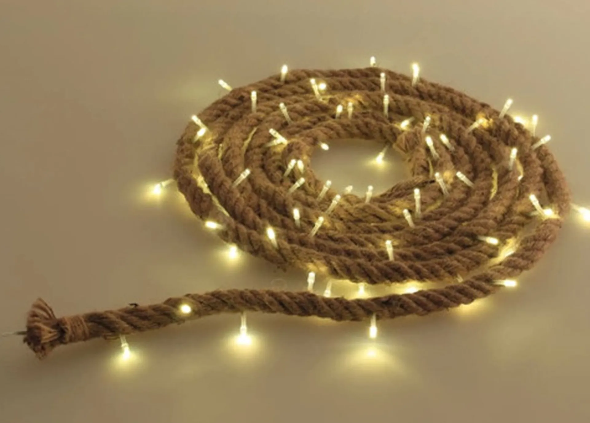 De Totale Kabellengte Is 6 Meter, Waarvan Het 3 Meter Lange Henneptouw Gedeelte Is Voorzien Van 60 Led’s, Die Zorgen Voor Een Sprankelend Lichteffect.