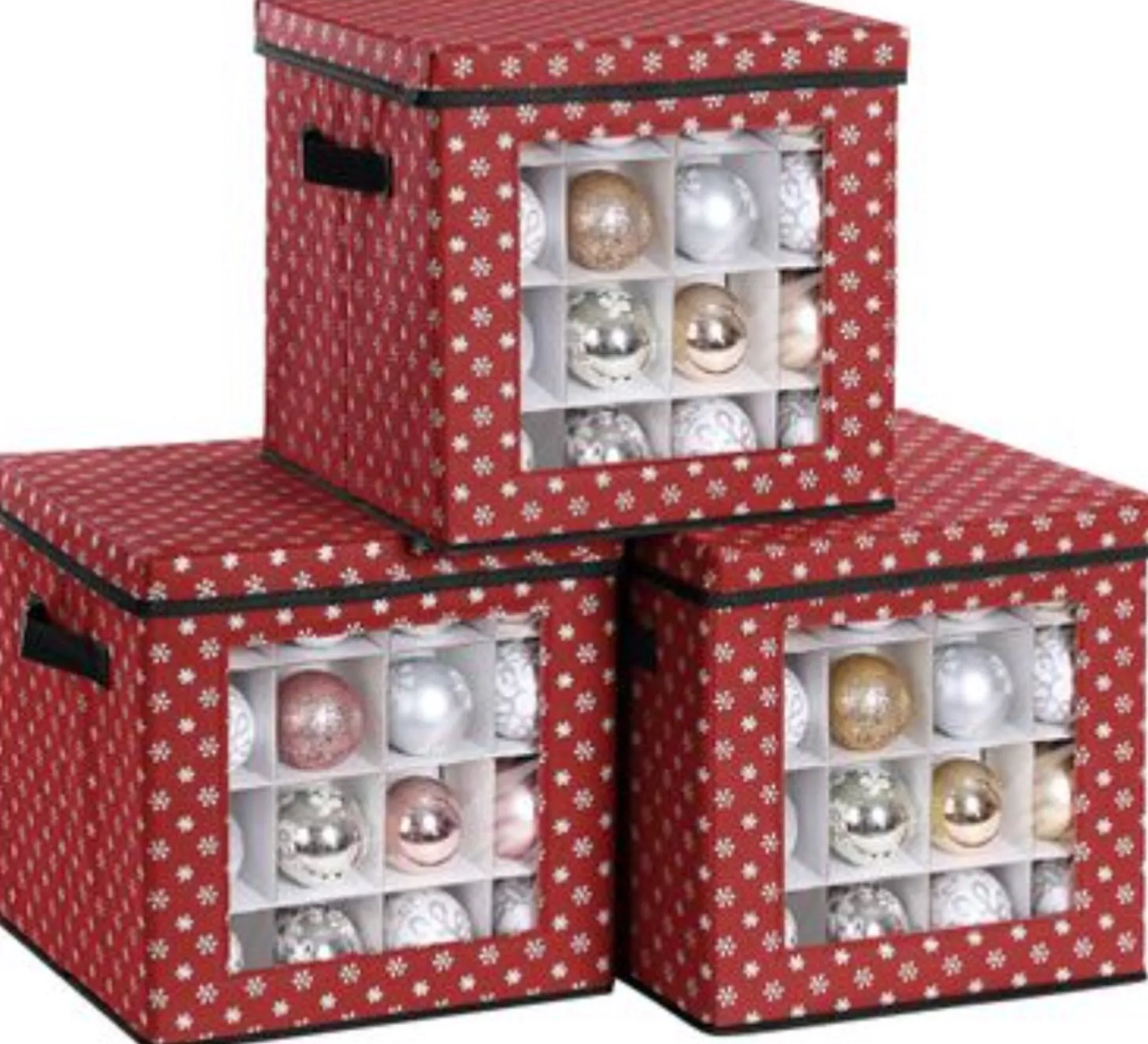 Geen Chaos: Geen Chaos Meer Bij Het Versieren Van De Kerstboom! In Deze 3 Dozen Kun Je Je Rode En Gouden Ballen Bewaren. Het Kijkvenster Is Zo Praktisch Dat Je Gemakkelijk Toegang Hebt Tot De Decoratie Die Je Nodig Hebt