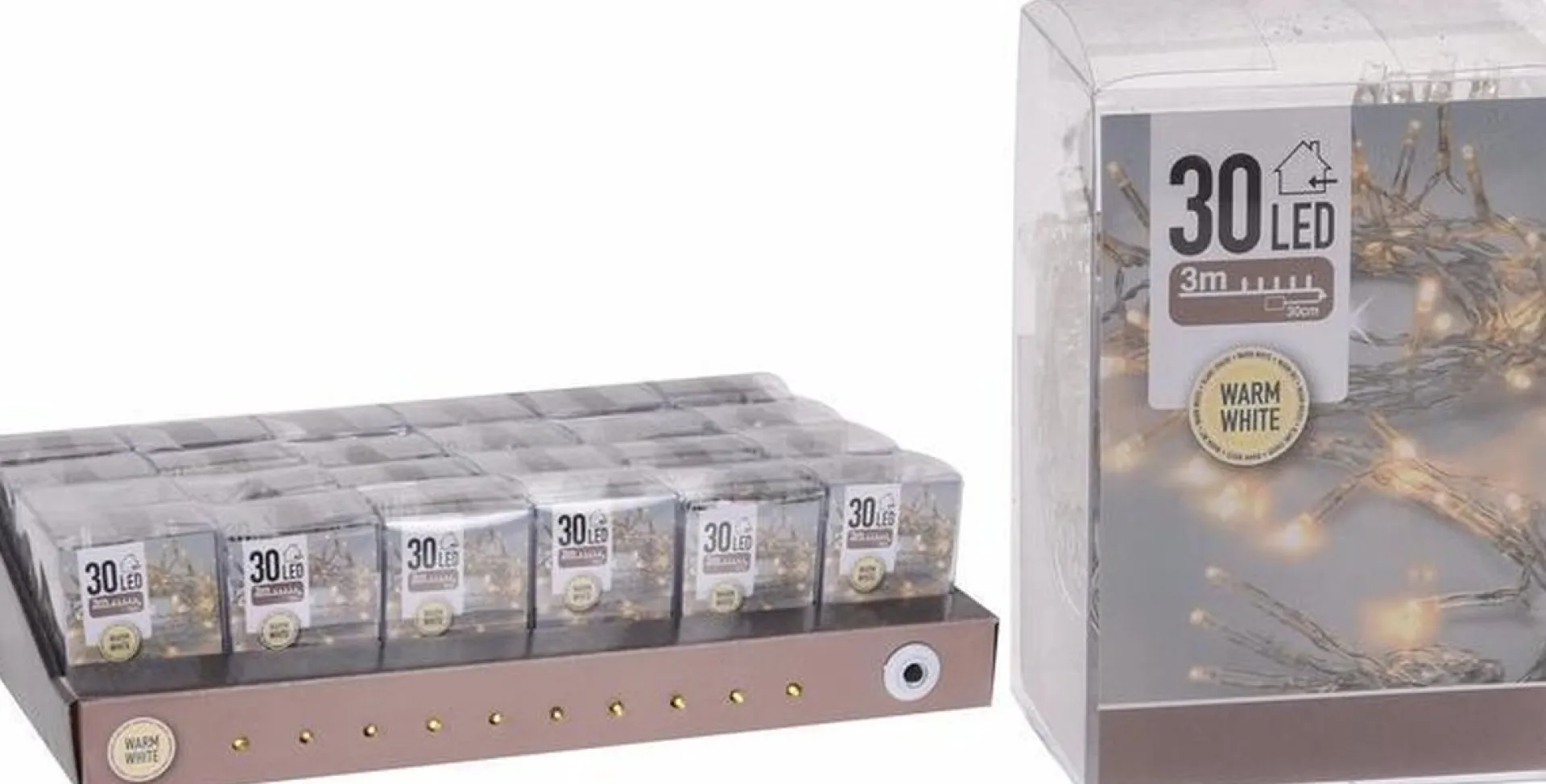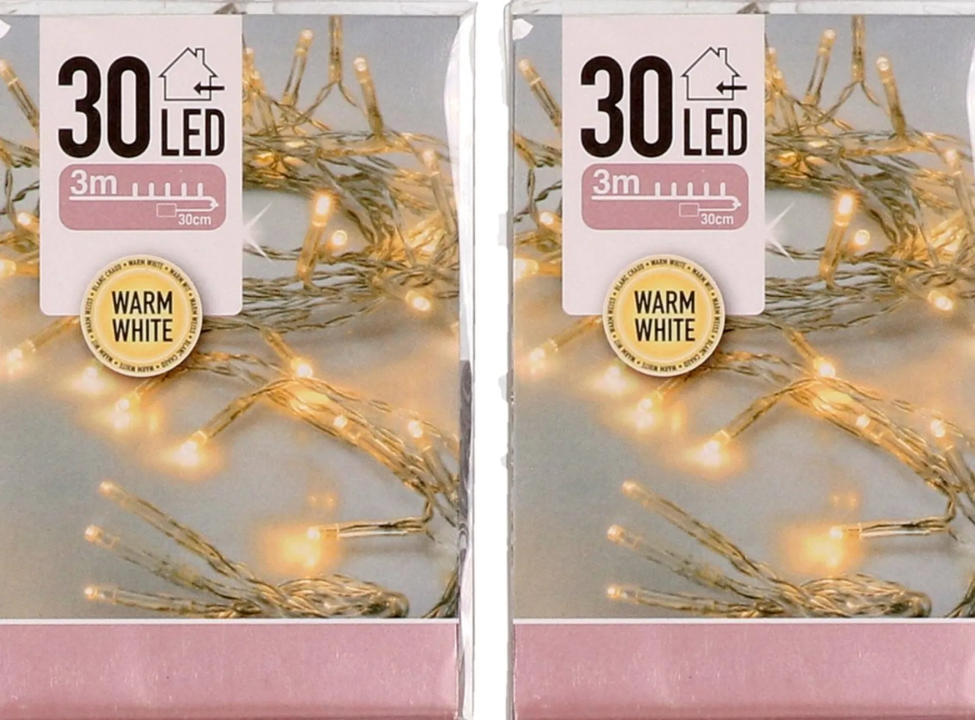 2X Kerstverlichting Op Batterij Warm Wit 30 Lampjes. Set Van 2 Lichtsnoeren Welke Per Stuk 30 Led-Lampjes Met Warm Wit Licht Bevatten. Beide Snoeren Hebben Een Lengte Van Ongeveer 320 Cm. Werkt Op 3 Aa-Batterijen, Niet Inbegrepen. U Ontvangt 2 Verpakkingen Met Per Verpakking 1 Lichtsnoer Dus In Totaal Ontvangt U 2 Kerstverlichting Lichtsnoeren.