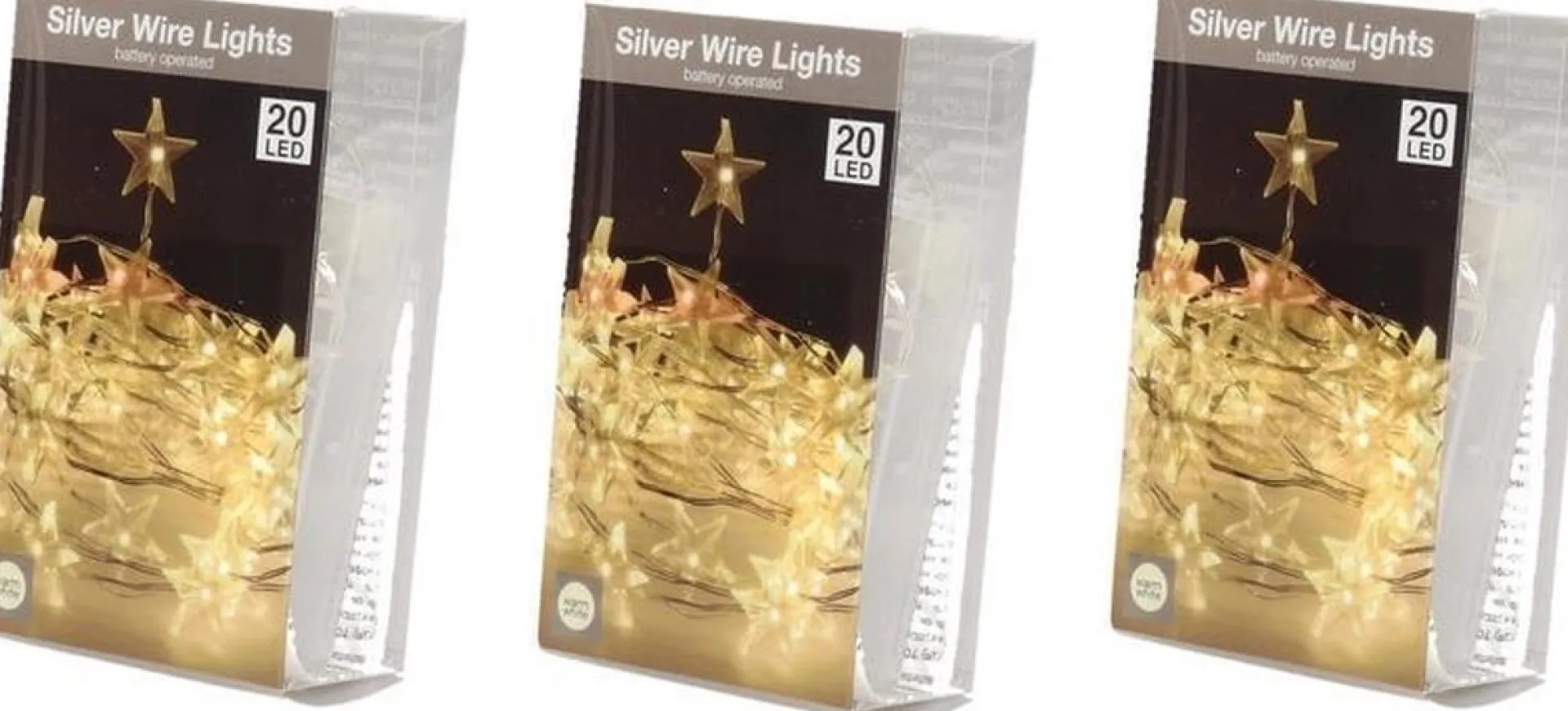3X Kerstverlichting Zilverdraad Sterretjes Op Led, 105 Cm. Deze Lichtgevende Sterretjes Zijn Bevestigd Aan Een Zilverdraad. Dit Draad Bevat 20 Led Lampjes Die Werken Op 2X Aa Batterijen, Welke Niet Zijn Bijgesloten. De Afstand Tussen De Led Lampjes Is 10 Cm En De Totale Lengte Waaraan Lampjes Bevestigd Zitten Is 95 Cm. De Lengte Van Het Laatste Lampje, Tot De Transformator Is 10 Cm.