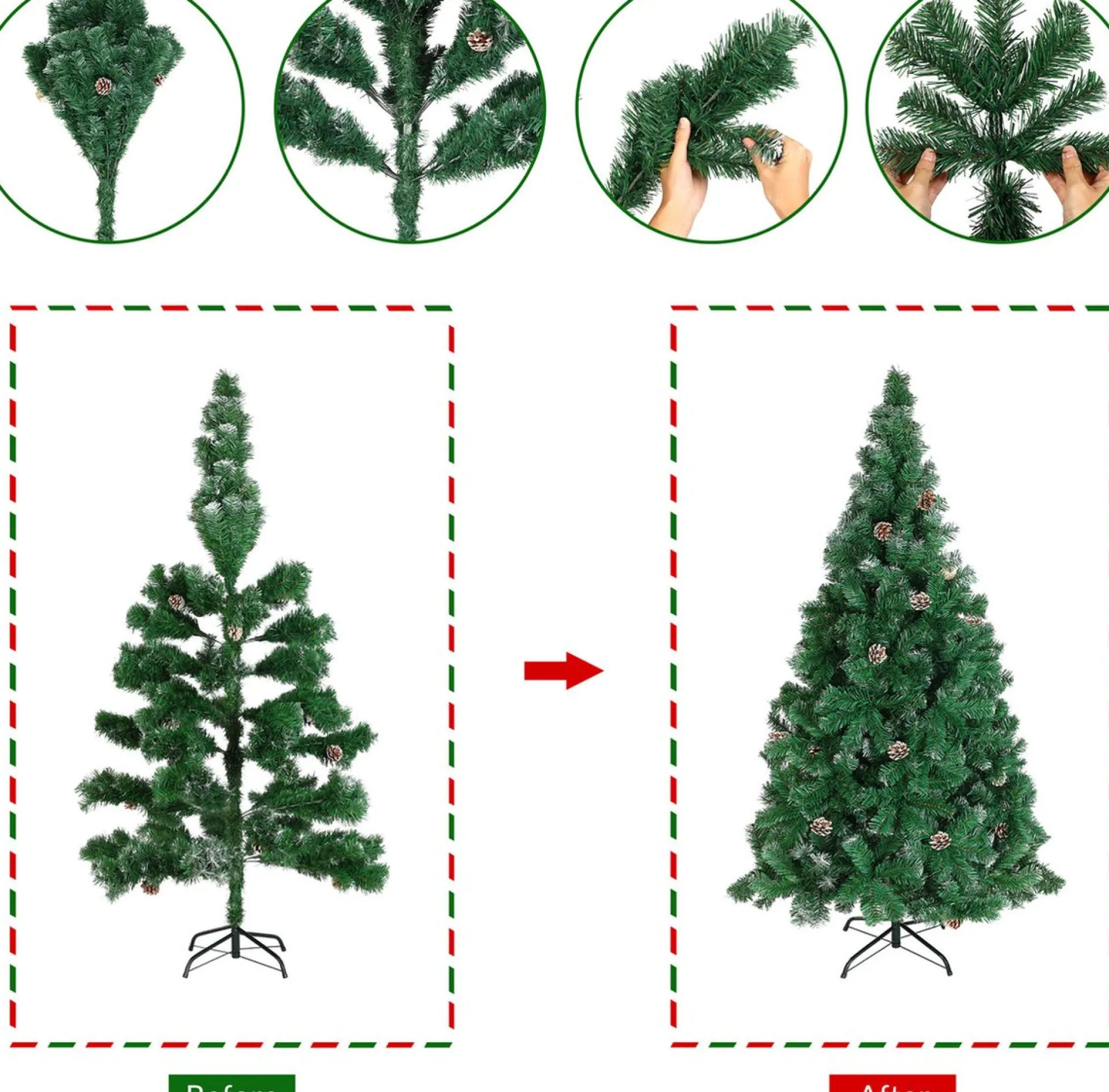 - Sneeuw 180Cm: Groen/Wit – 705 Takken – Incl. Dennenappels & Sneeuwdecoratie – Materiaal Pvc