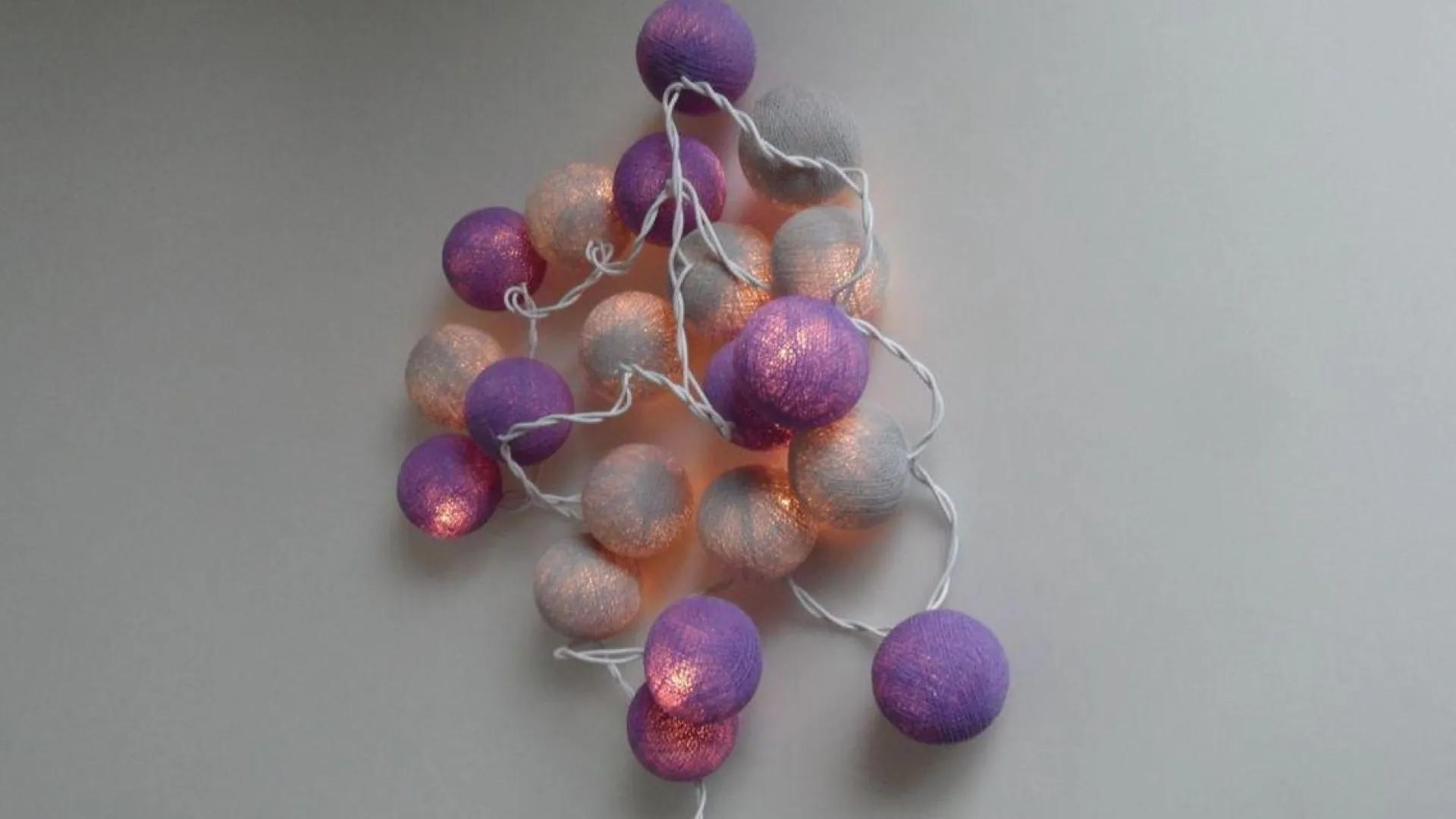 Merkloos Feestverlichting, Party Lights, Kerstversiering, Kerstverlichting Sfeerverlichting ,Lichtsnoer Lichtslinger Kleur Paars Grijs 20 Ballen Doorsnede 6Cm Lengte Snoer 320 Cm Waarvan 150 Cm Kale Snoer. Flash Sale