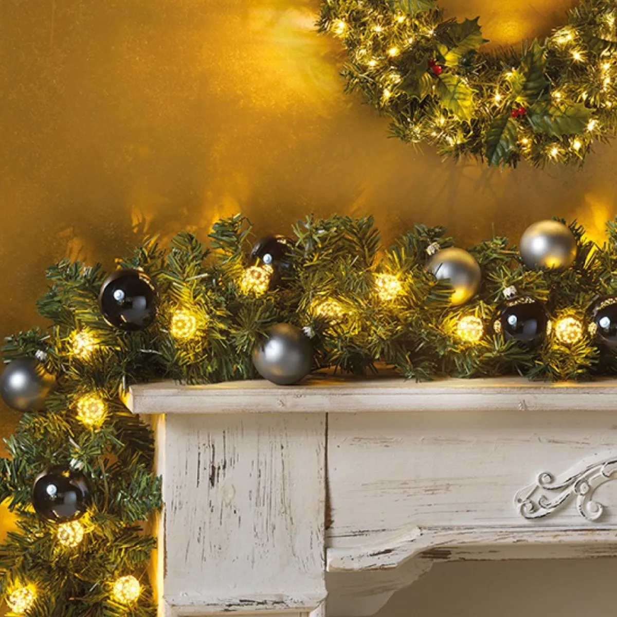 Groene Dennen Guirlande/Dennenslinger 270 Cm Inclusief Helder Witte Verlichting. Kunst Dennenslinger Inclusief Kerstverlichting Lichtsnoer Met 50 Helder Witte Led Lampjes. Lengte Lichtsnoer: 500 Cm En 30 Cm Aanloopsnoer. Voeding Lichtsnoer: 3X Aa Batterijen (Niet Inbegrepen). Lengte Dennenslinger: 270 Cm. Breedte Dennenslinger: 25 Cm.