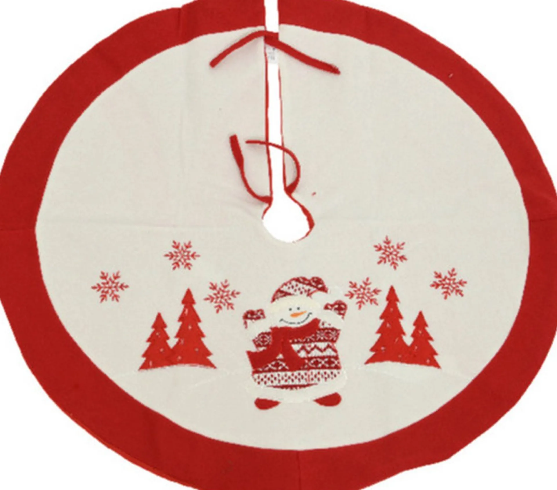 Kerstboomkleed/Kerstboomrok 90 Cm Met Sneeuwpop. Rood/Wit Kerstboomkleed Met Sneeuwpop En Kerstbomen Applicatie.