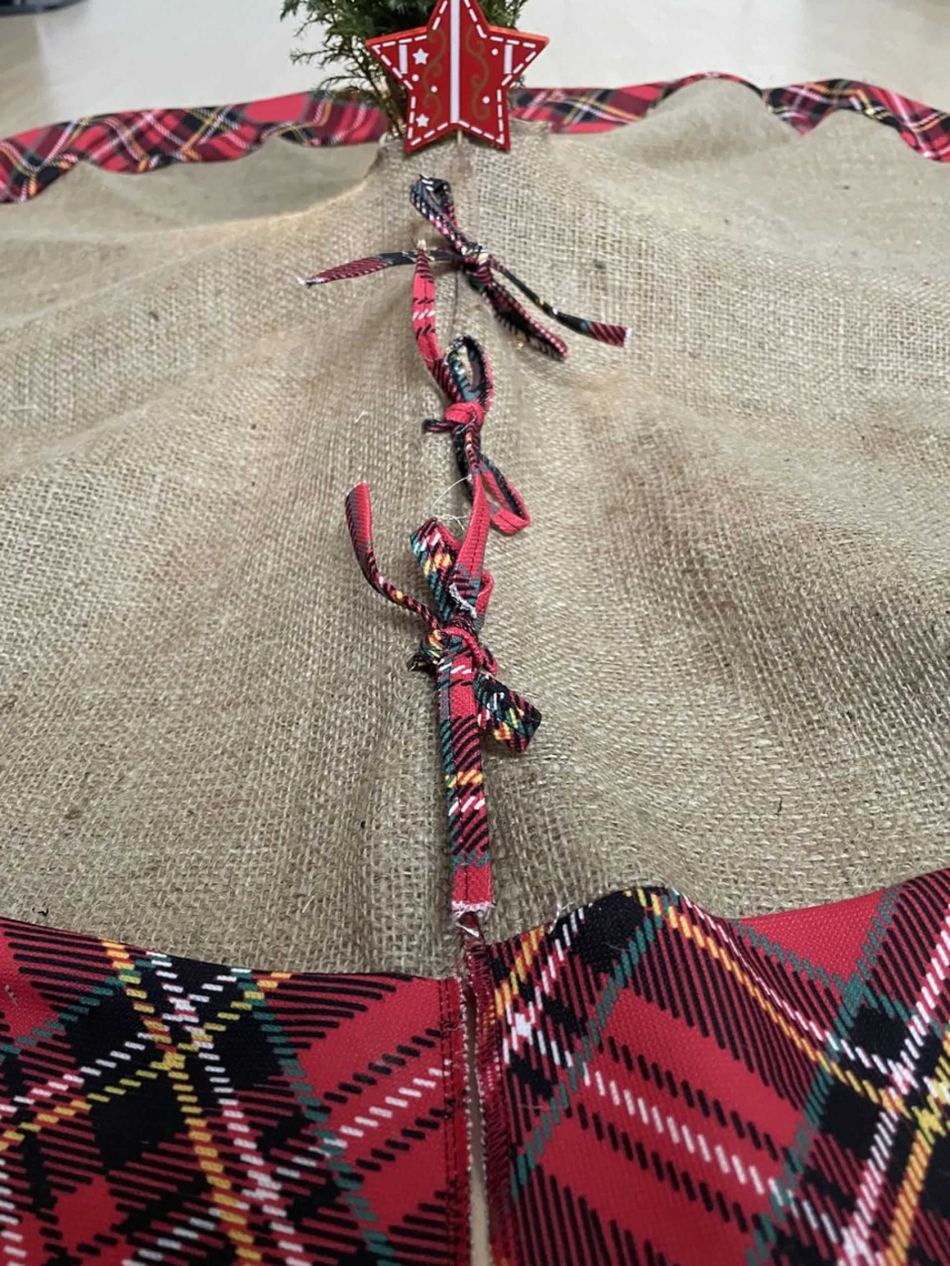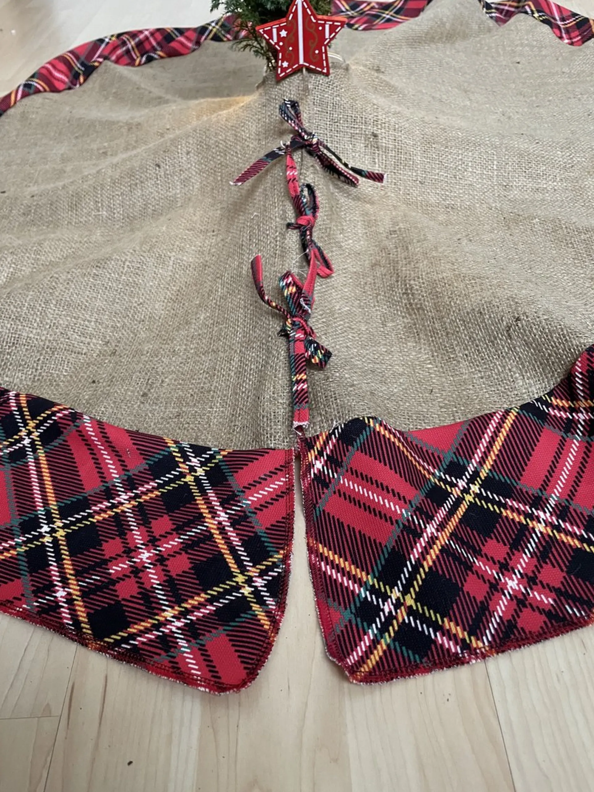 Kerstboomrok / Christmas Tree Skirt Made With Jute And Red Scottish Pattern