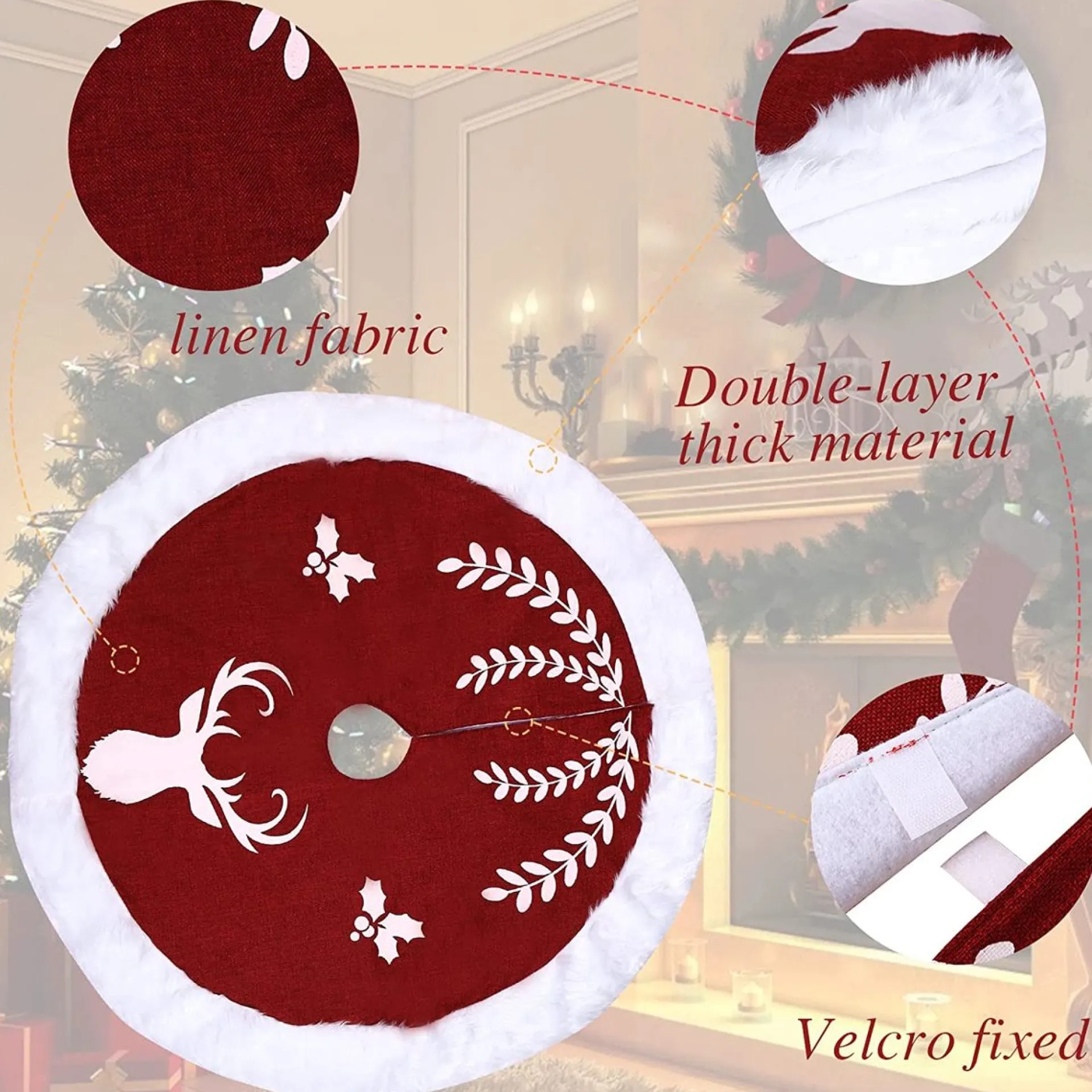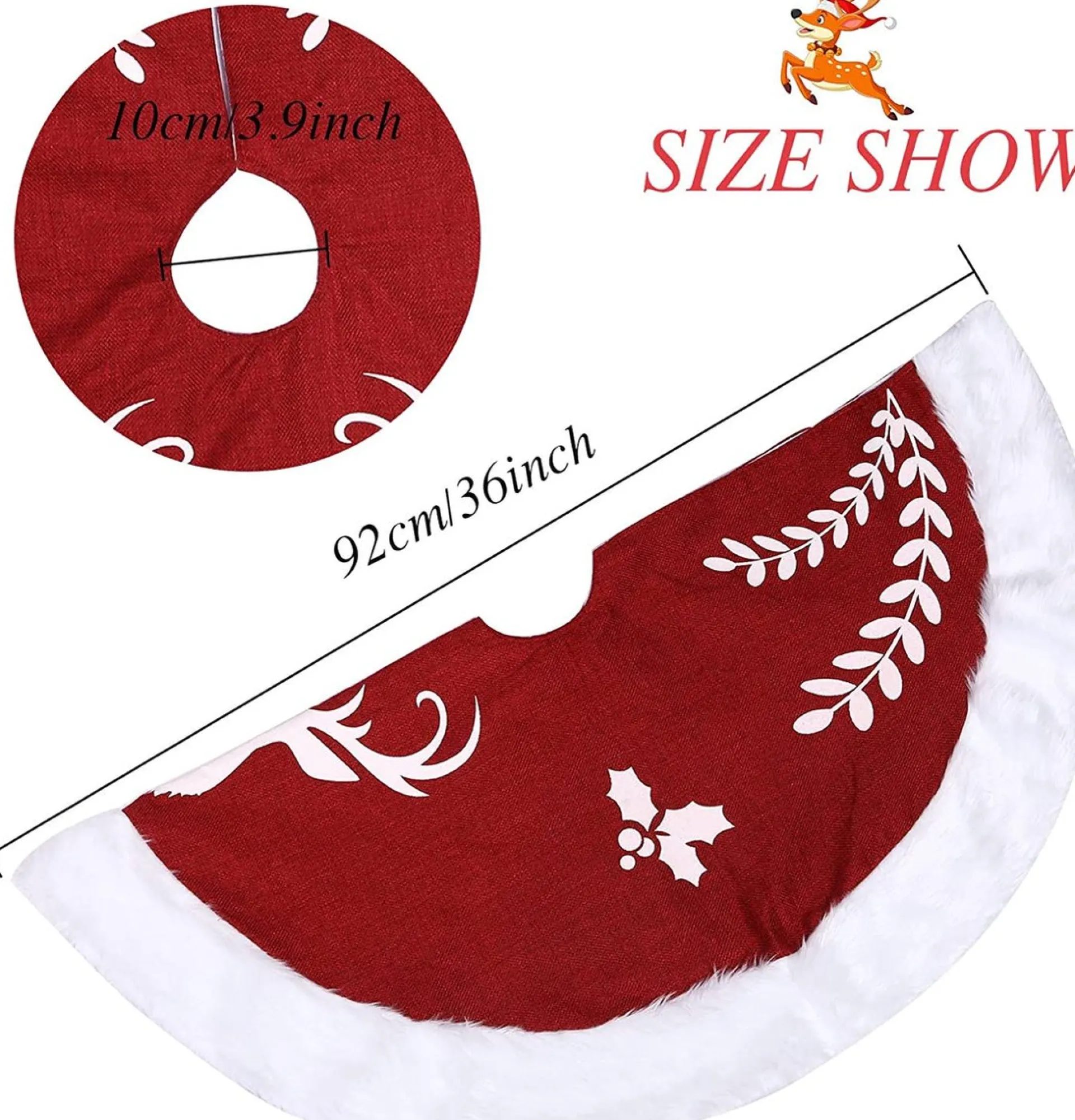 - Hoge Kwaliteit: De Kerstboomrok Is Gemaakt Van Hoogwaardige Pluche Stof En Vliesstof, Dubbellaags Design, Goede Rokstructuur Is Uitstekend, De Rand Is Zorgvuldig Genaaid, Zacht En Warm, Rood-Wit Gecombineerd Design Dicht Bij De Kerstsfeer.