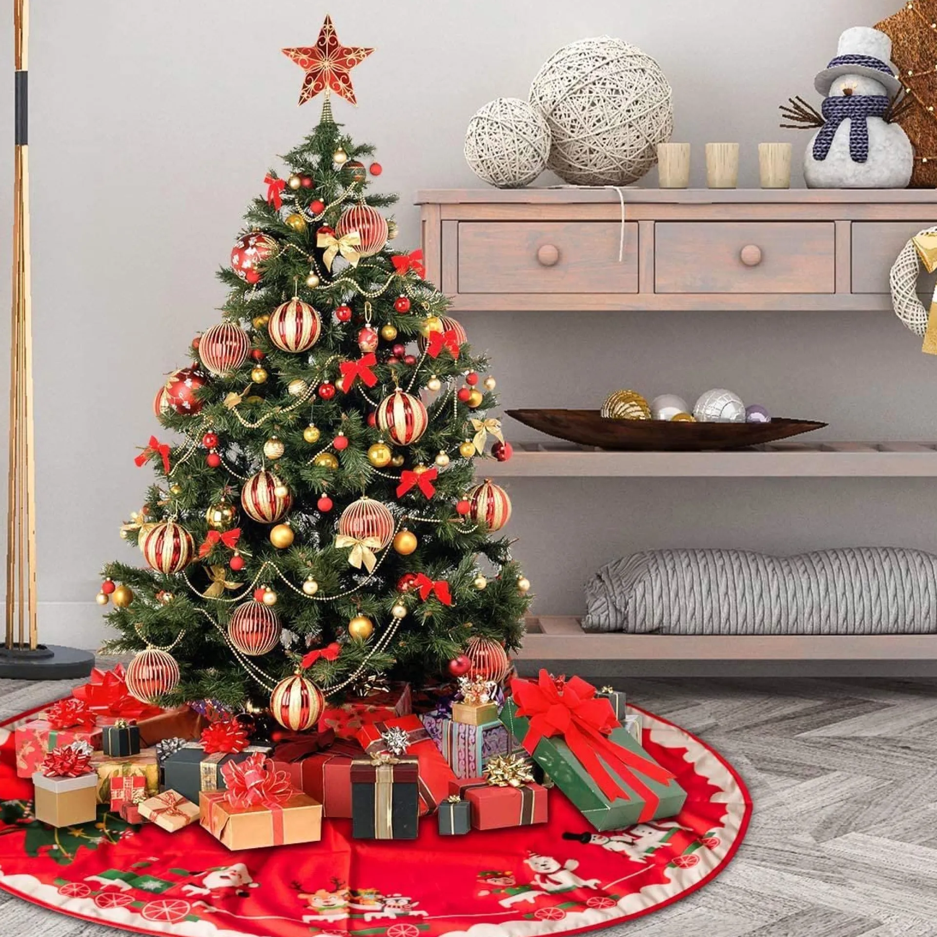 Ronde Kerstboomrokken Xmas Kerstversiering – Eenvoudig In Gebruik: Laat Een Gat In Het Midden Van De Boom Achter, Met Een Diameter Van Ca. 6 Cm Heeft. Met Verborgen Vier Bindtouwen -Design. Het Touw Is Aan De Rand Van Het Kerstboomkleed Rood Genaaid Om Je Te Helpen Hem Eenvoudig En Snel Te Bevestigen.